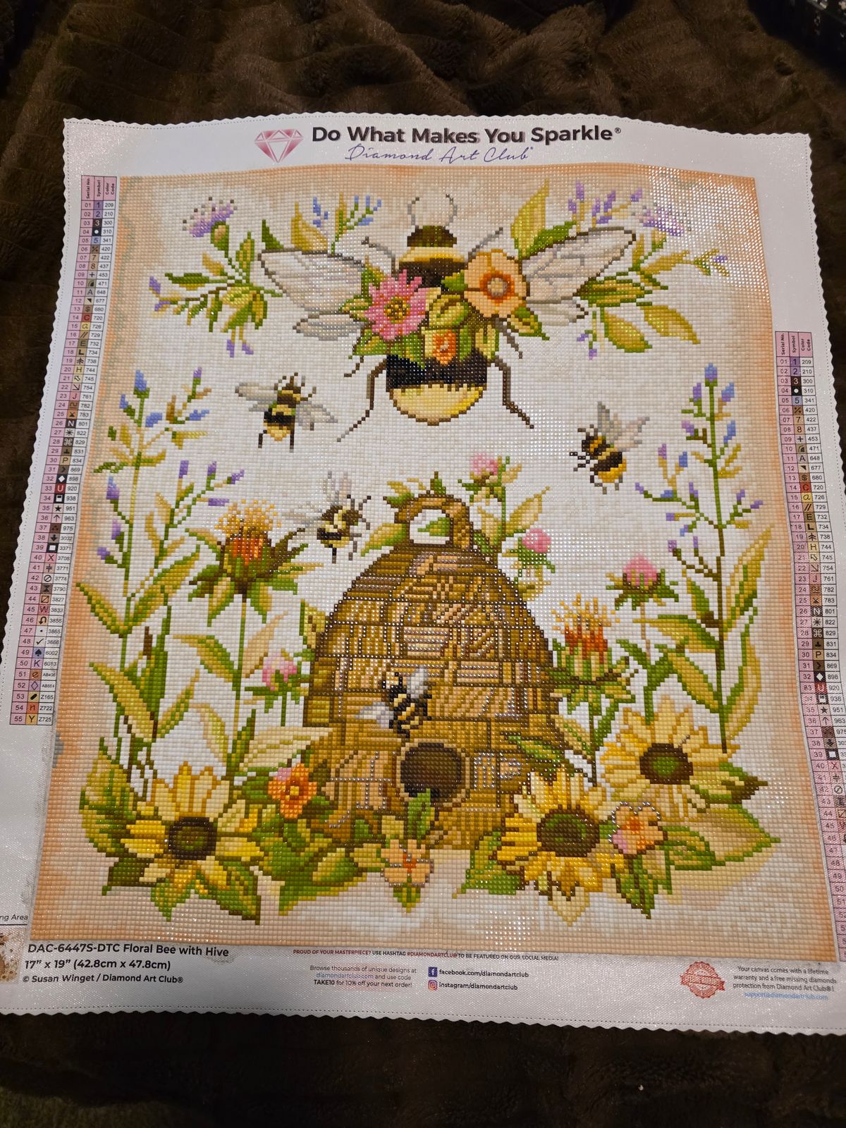 Love this kit it reminds me of my Mother. She loved bees The quality of the kit is superior to any other kit. I will never buy another companies kit. The square diamonds are so much easier to work with and line up awesome.