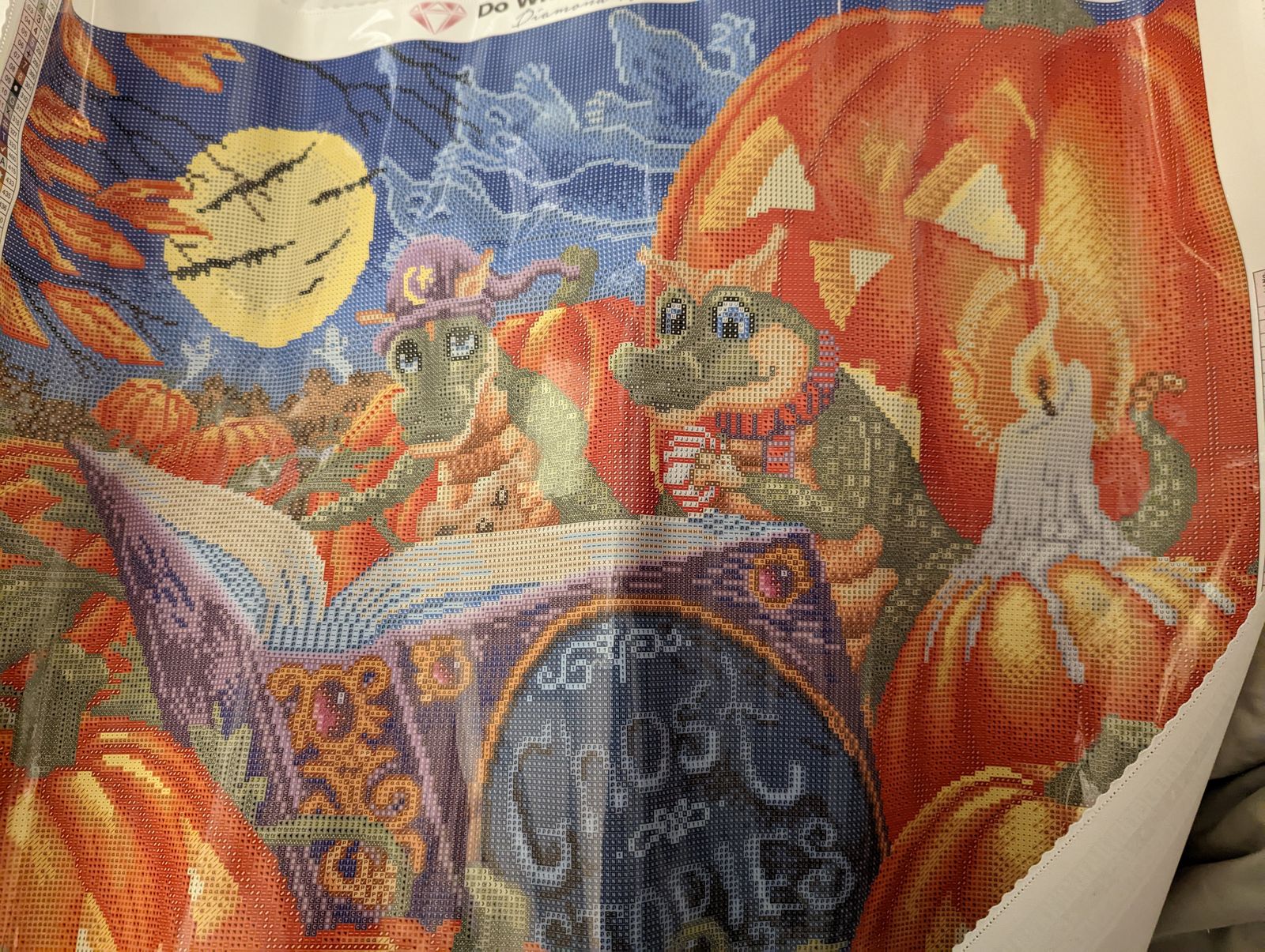 Loved loved working on this canvas. Those dragons are so cute. I’ll be hanging this one at work next year Halloween. I highly recommend this kit.