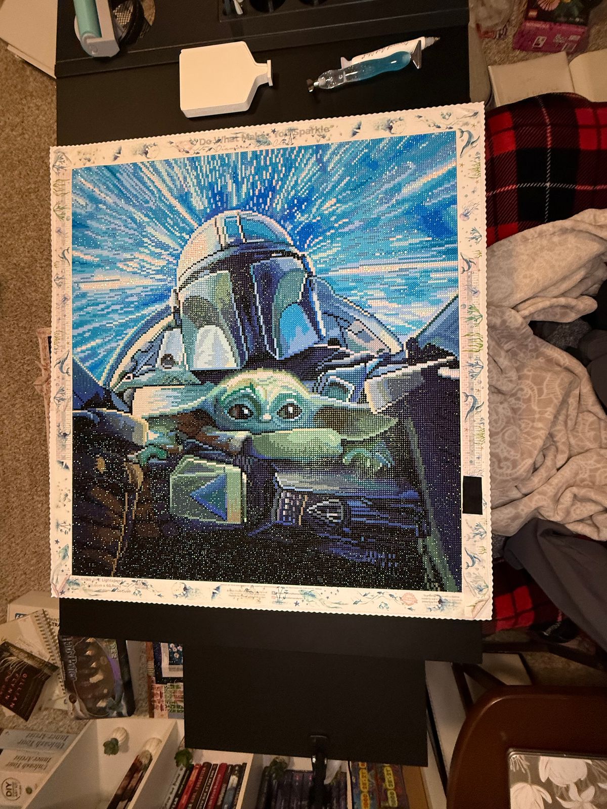 I'm a huge fan of Grogu (still Baby Yoda to me) and this is such a fun kit to complete. It goes fast, and this size isn't huge, but the details are still clear and super cute. I love the sparkliness of the background and the distinct bright colors so it doesn't get muddy with all the darker colors at the bottom.