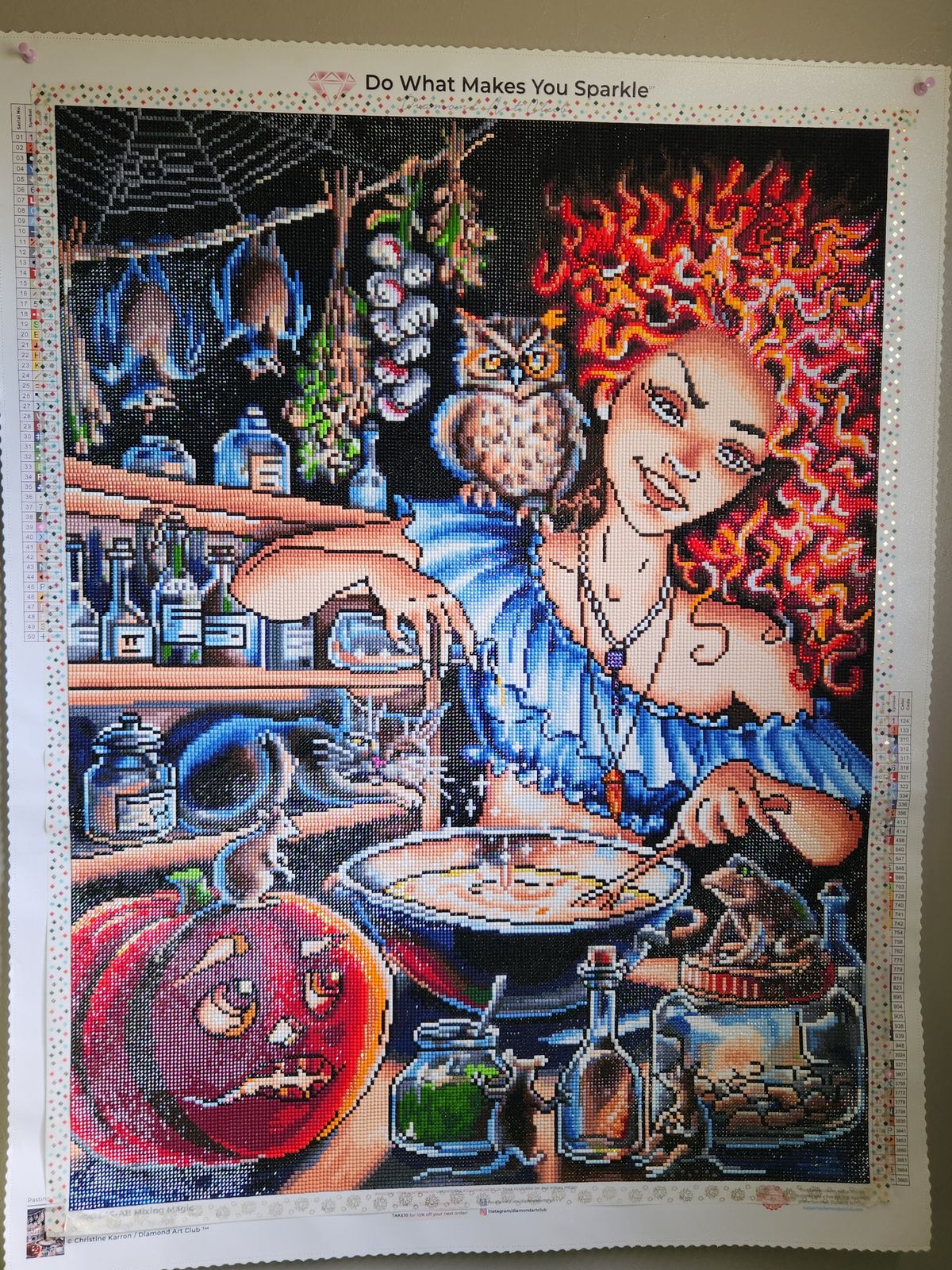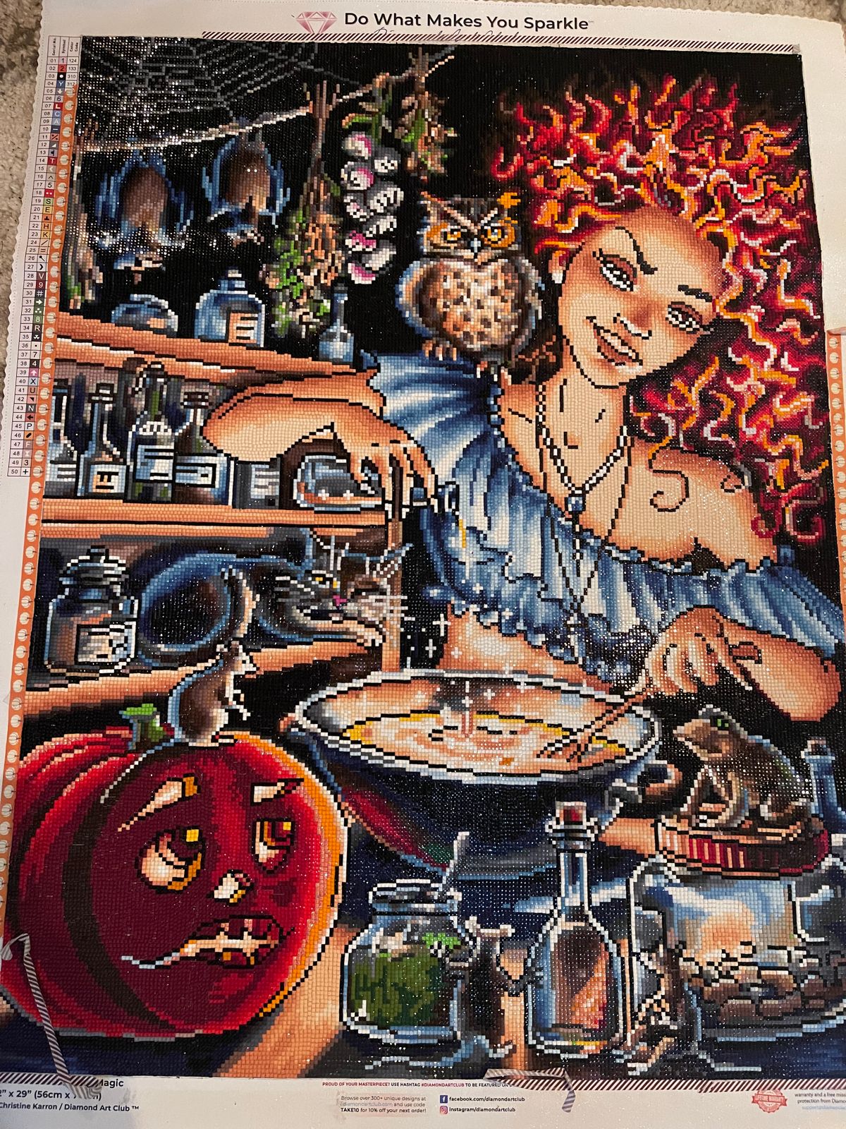 This was a very fun canvas to work on. I bought it because it reminded me perfectly of one of my co workers. It was spot on - it's hanging in her office right now. She loves it! The canvas was great, the image is perfect. I had trouble with three colors of drills. All three were dark colors and I had holes, brads and misshaped ones included. I had enough of all three colors to finish the project without running short, it was just aggravating to have to pick through. Overall, Diamond art club has the best product our there and a few frustrations with drills will not stop me from buying or recommending them.