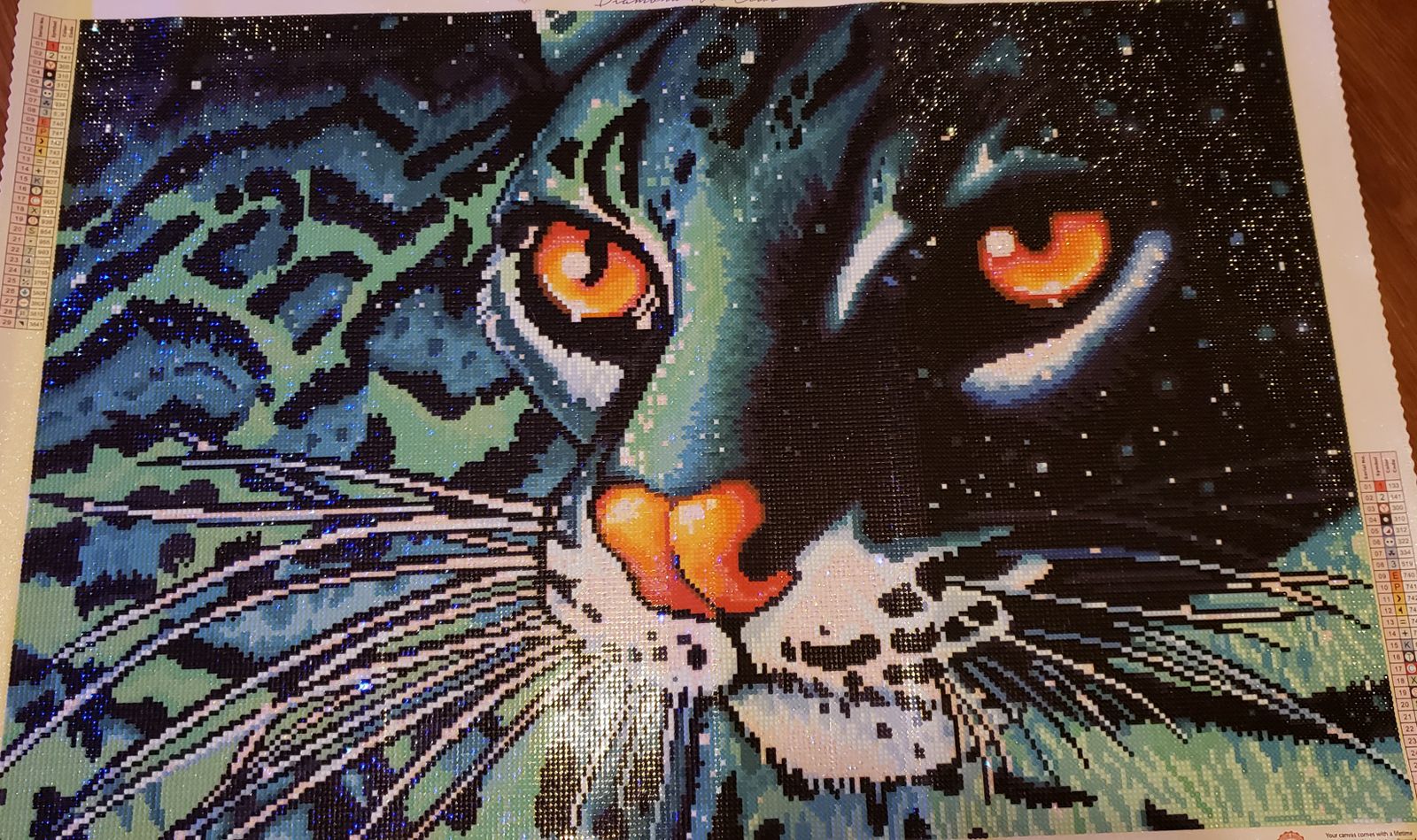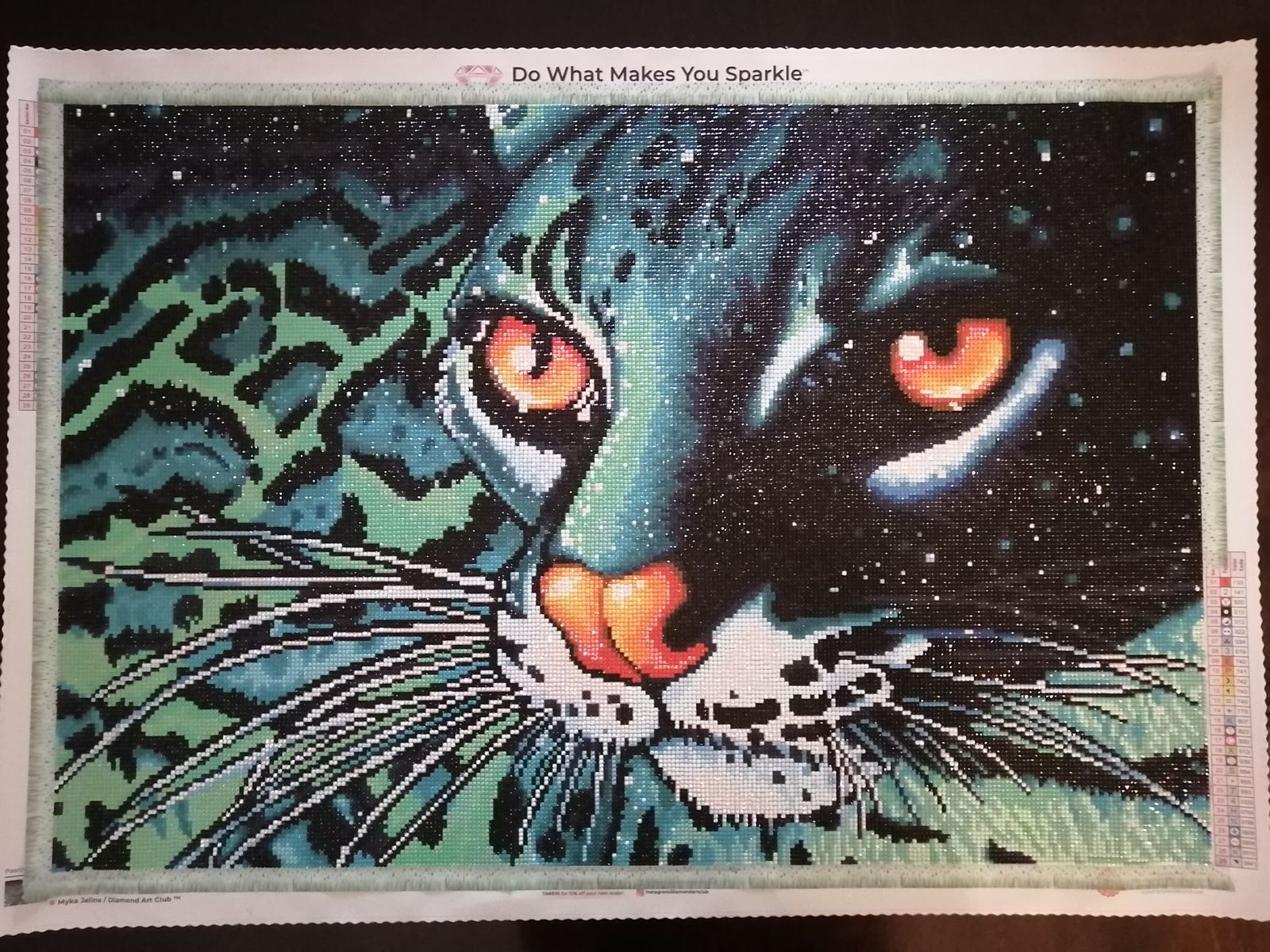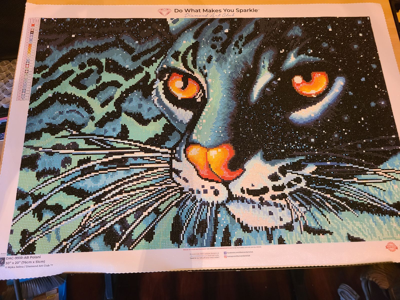 I loved working on this gorgeous diamond painting. The screen leopard is a nice companion piece to Sitara. I am very much looking forward to hanging both of them up together.