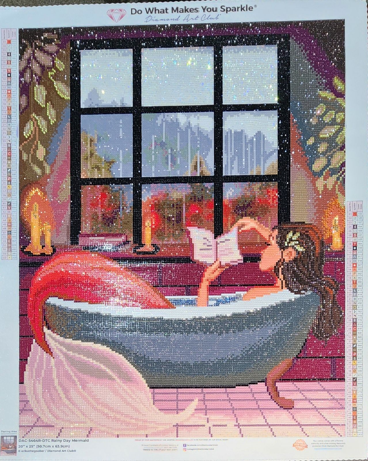 Diamond Painting Rainy Day Mermaid 20" x 25" (50.7cm x 63.9cm) / Round with 53 Colors including 3 ABs and 1 Iridescent Diamonds / 41,268