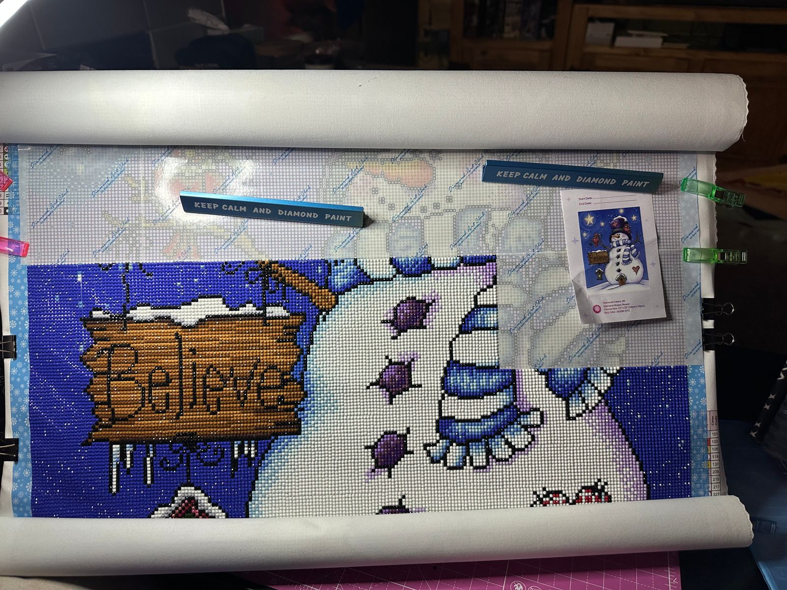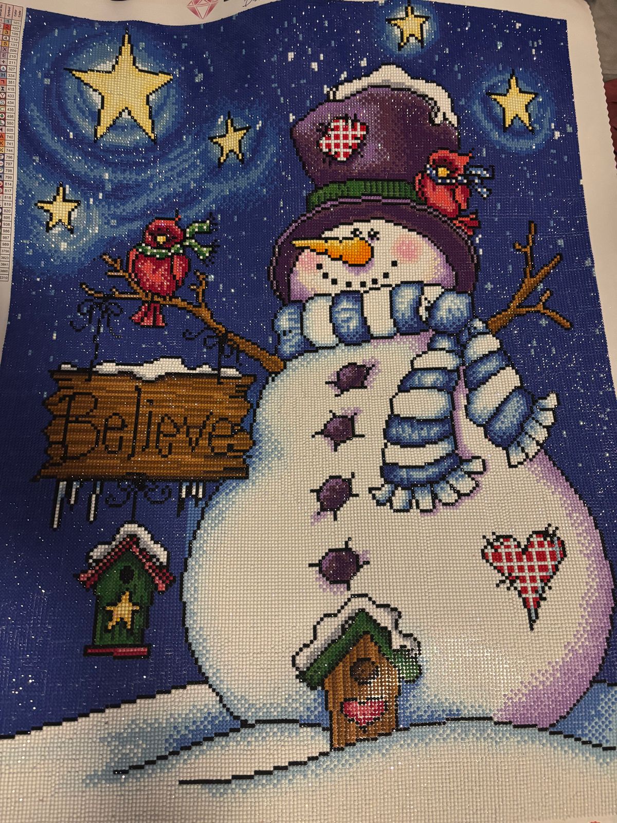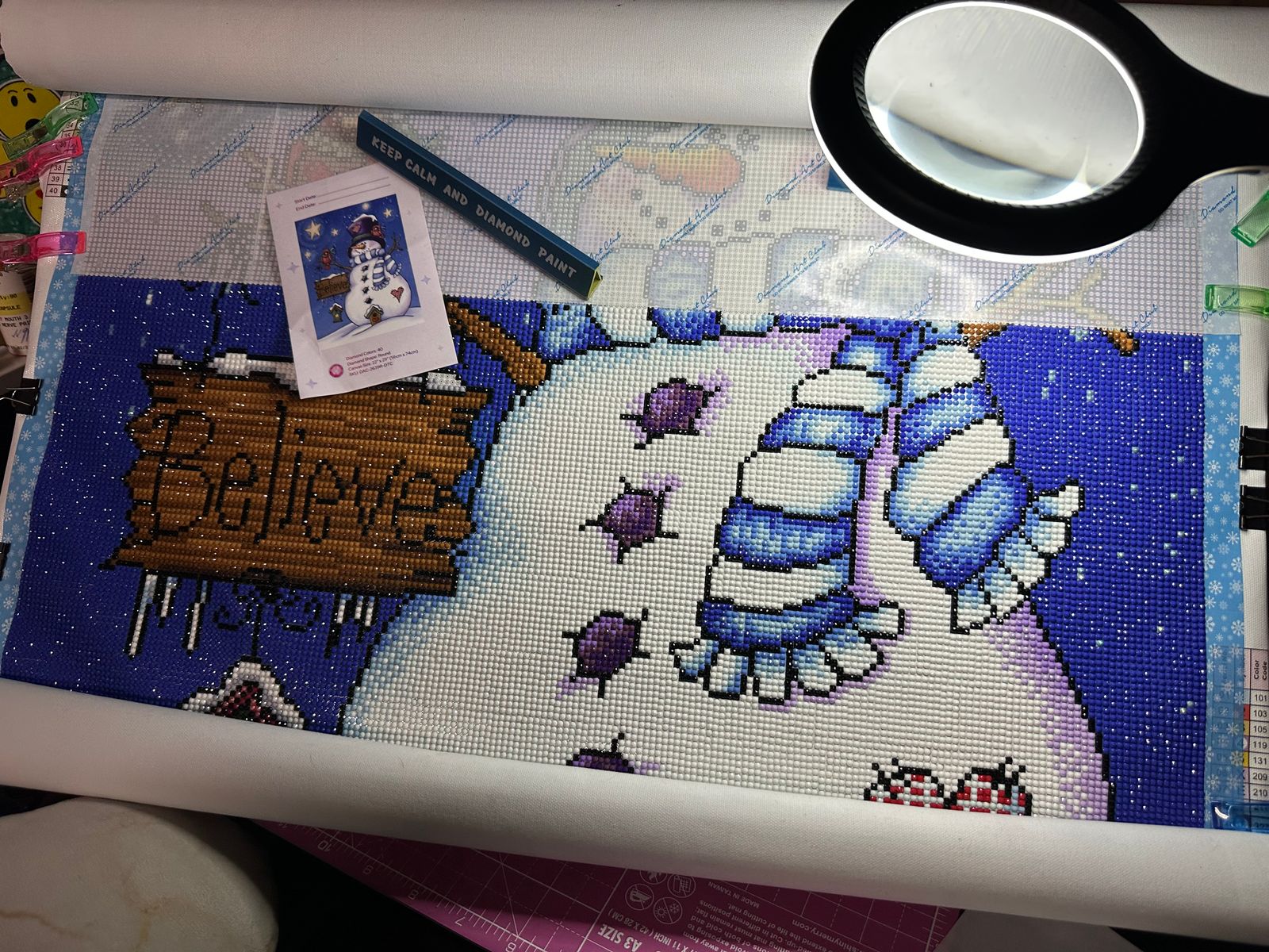 Diamond Painting Snowman Believe 22" x 29″ (56cm x 74cm) / Round with 40 Colors including 5 ABs and 1 Glow-in-the-Dark / 52,138
