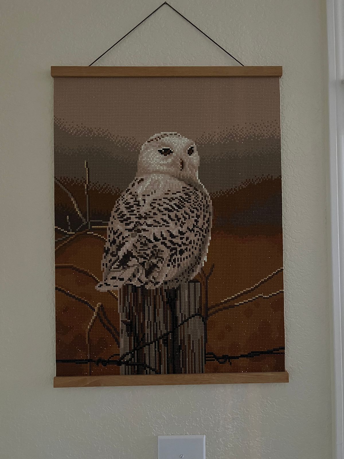 I picked this canvas because my mom really likes owls. It only has 18 colors which makes it very repetitive on placing the drills. The final result is really pretty with the white owl.