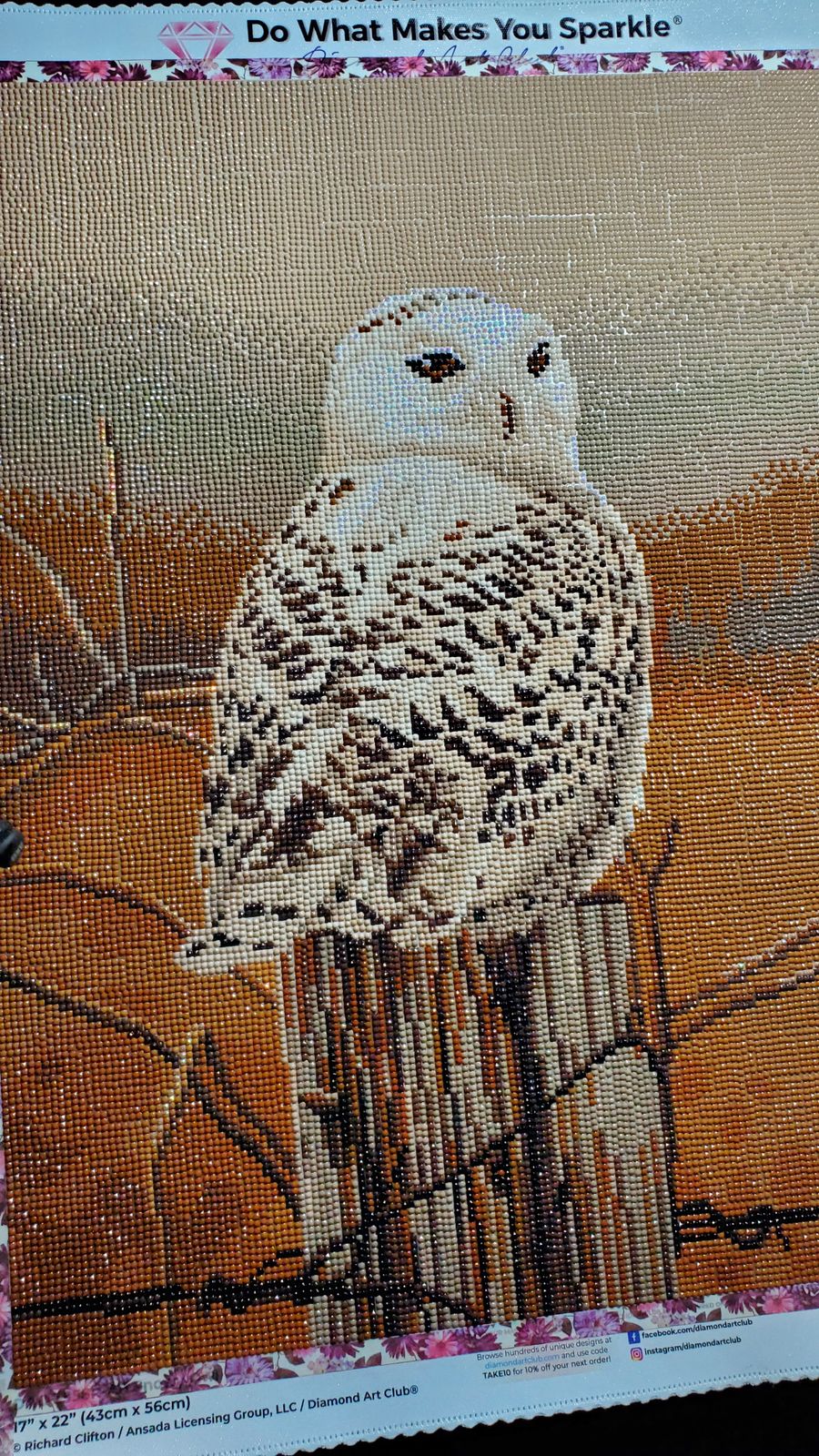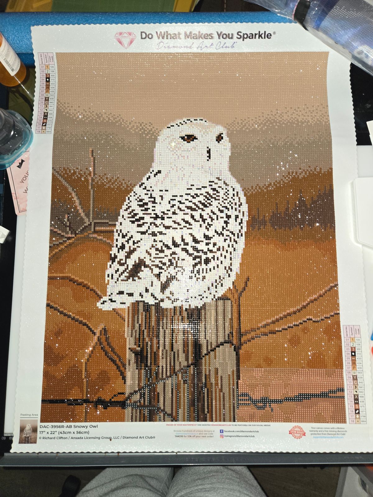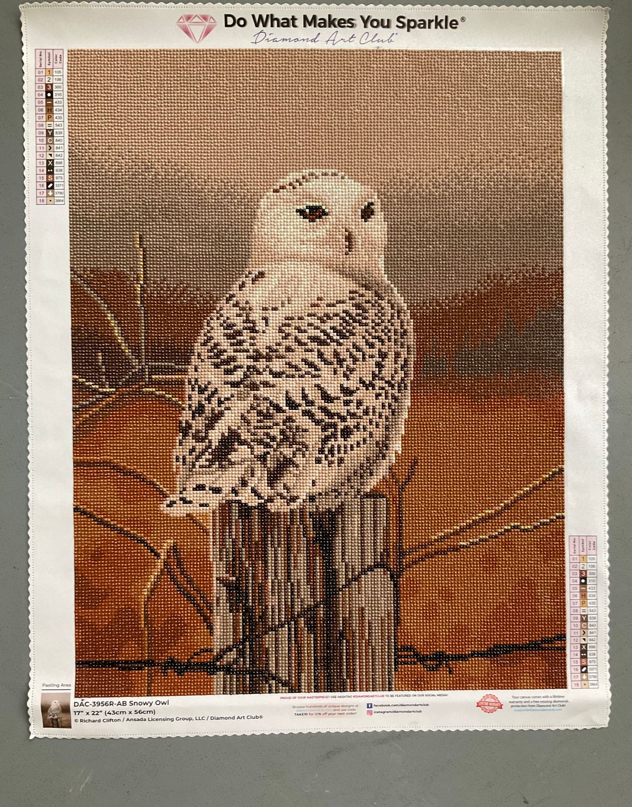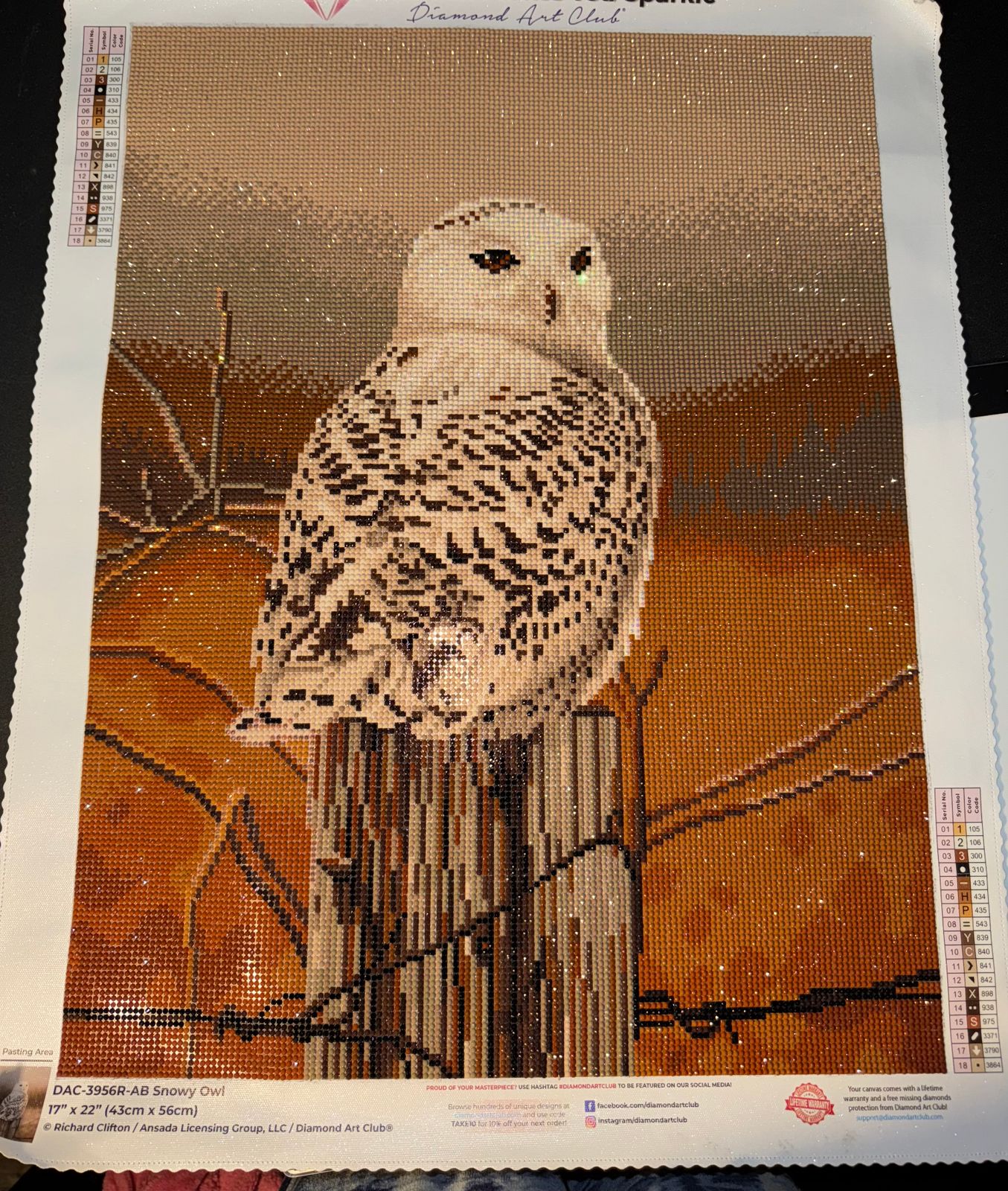 So this is my very 1st DAC painting that I have been super disappointed with the coloring choices. I completed it with the provided drill colors. However, when I completes the picture I did not like how the owl looked. A snow owl is very white in color. So I picked all the "white" colors or and replaced them with DAC 5200. Which looks so much better. My photo is with my modification.