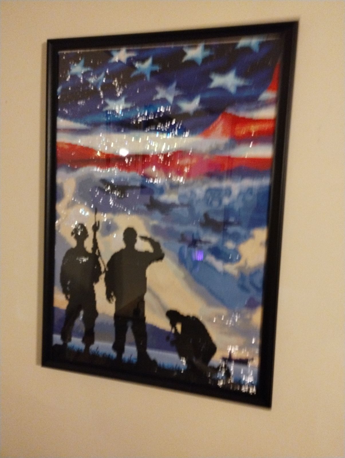 I love the fact that the soldiers glow in the dark on this canvas! Anything veteran or active military related catches my eye, and anyone else that comes into my home.