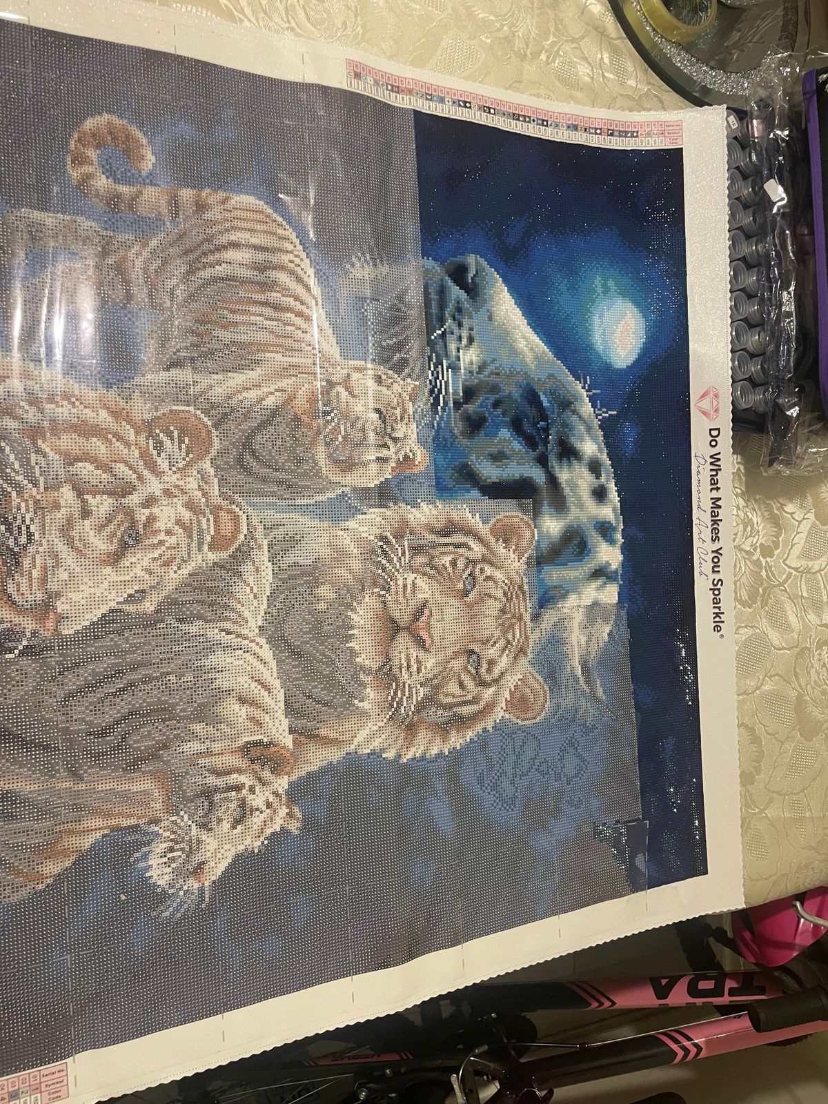 This was a dream to paint. The white tigers came alive with each drill placed and I was obsessed with finishing it. Everyone who sees it just loves it. Great job DAC!!