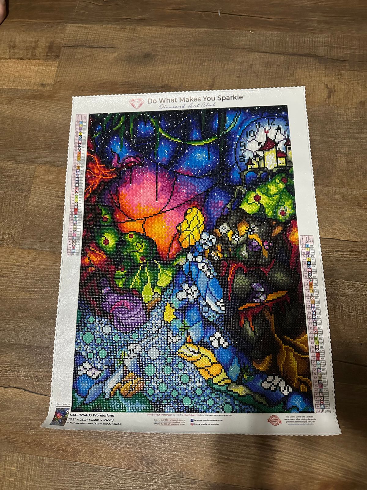 I’m a HUGE Alice in Wonderland fan, and this diamond painting is one of my first, but still one of my most favorites. It looks perfect next to my collection of Alice in Wonderland Disney display! The colors are so beautiful, and all the little easter eggs and nods to the Disney animated movie make this painting extra fun and special. I see something new every time I look at it! Perfectly rendered, very little trash drills, and lots of satisfying confetti. It was also surprisingly fast to finish! Wonderland is an oldie but a goodie, a classic DAC x Mandie Manzano work of art, and this painting has a ton of sparkle!