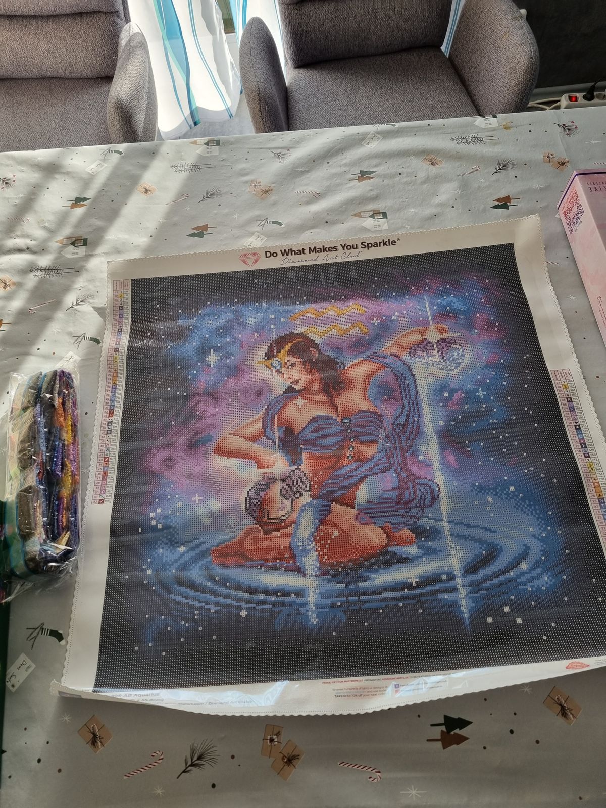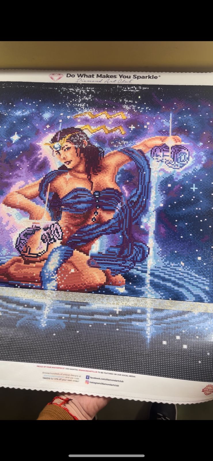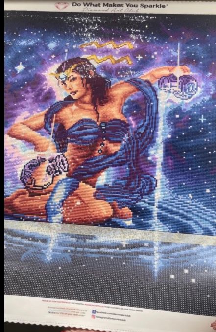 I got this for my birthday this year. While I haven't started it yet, I did unbox it. My mother and I are both Aquarius so this meant a lot to me. The jewels are amazing and the canvas looks exciting to start.