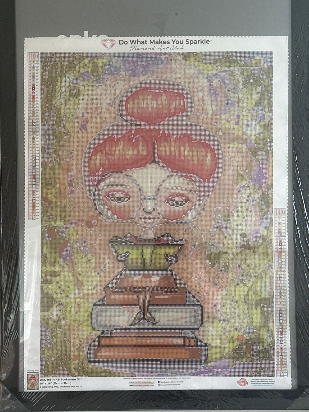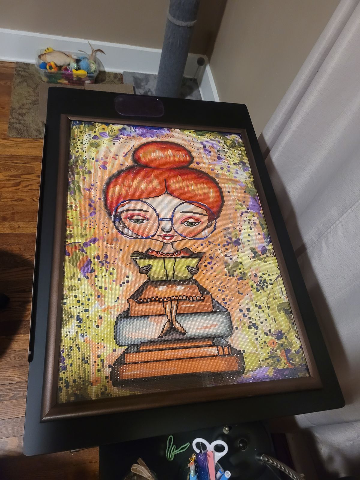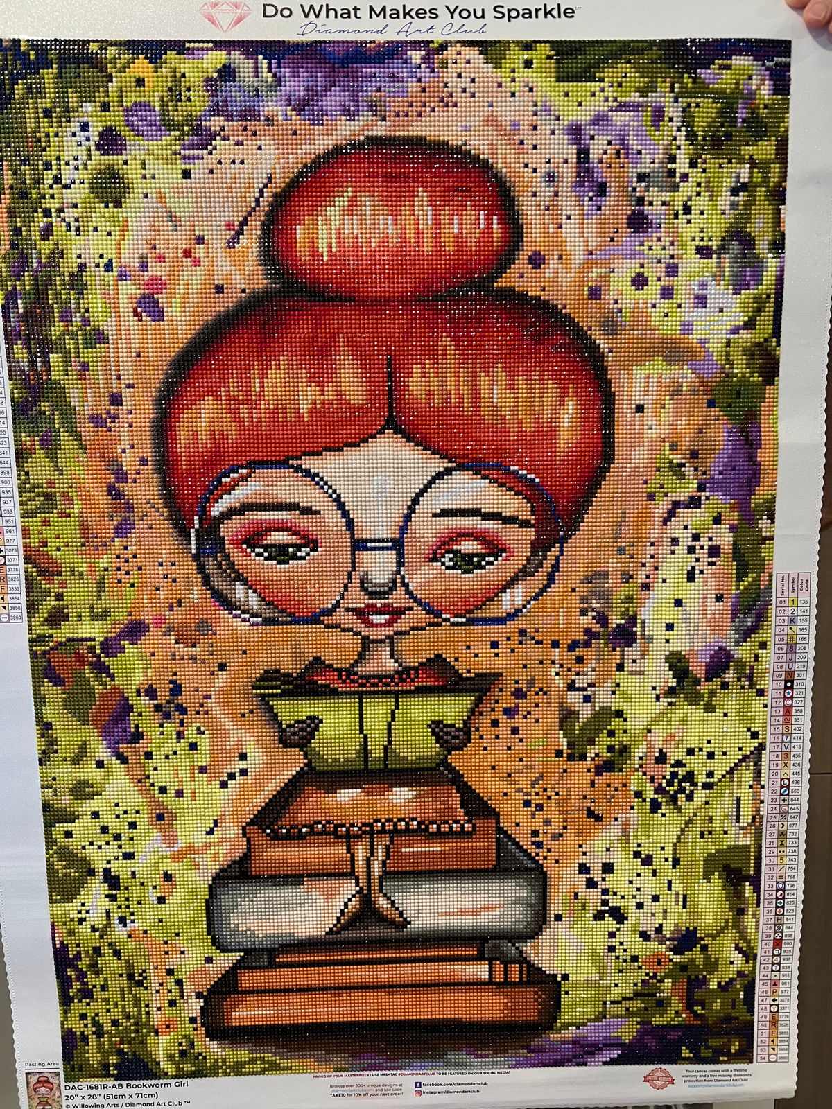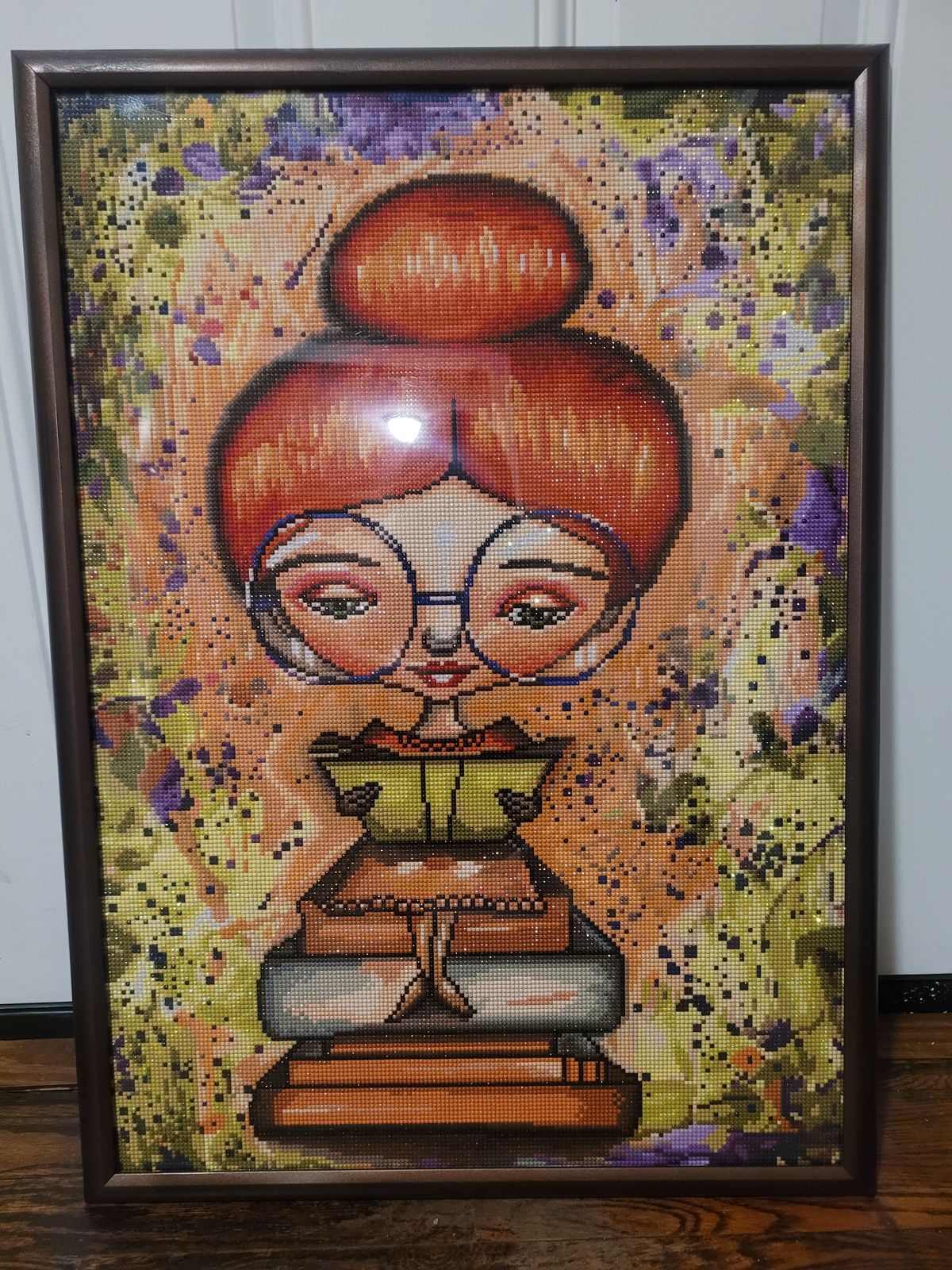 I bought this one on a whim. It reminded me of my granddaughter - doesn't look like her but she ALWAYS has her nose in a book. Lots of background confetti but so fun to do!