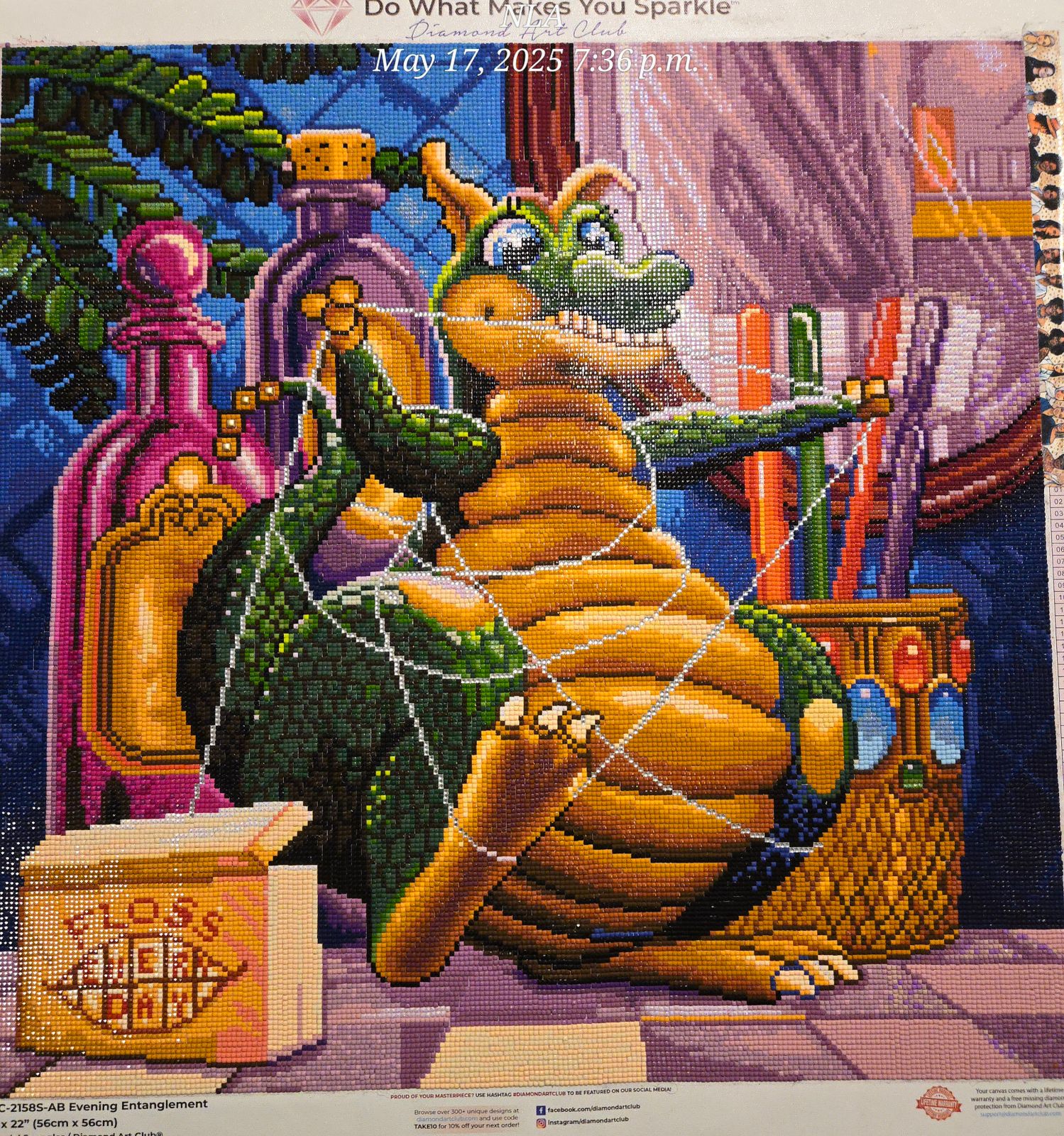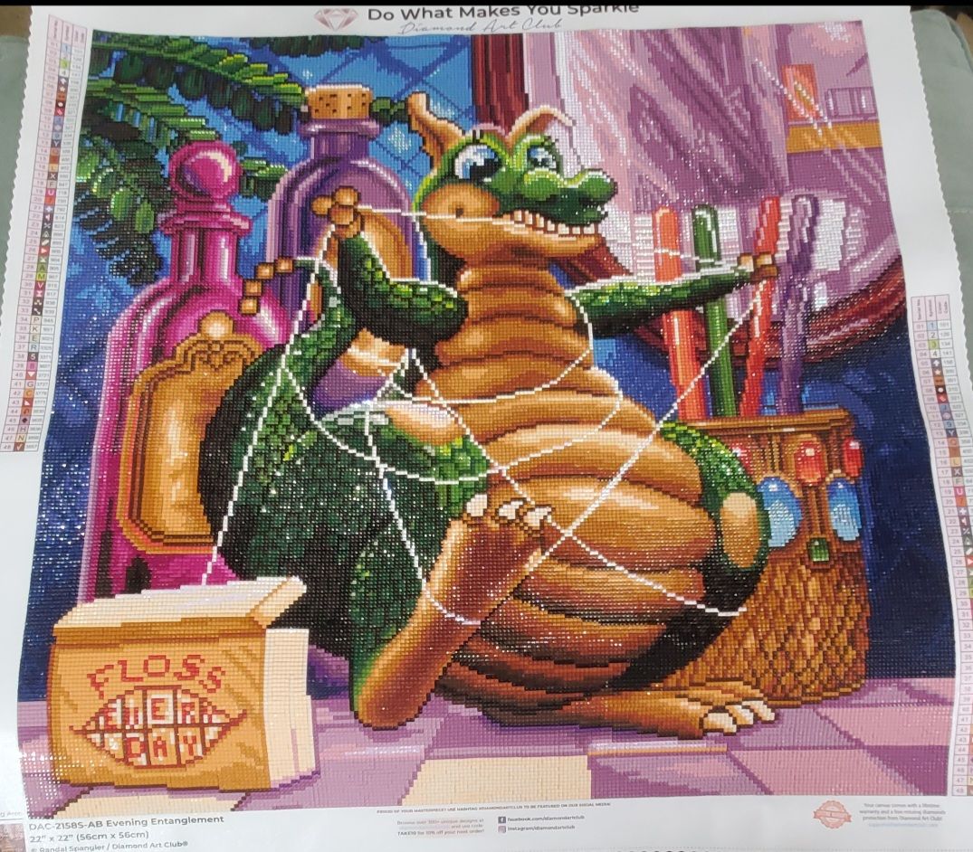 Who doesn't love a dragling getting tangled in floss?! Beautiful and vibrant colors. Details are excellent. Love it.