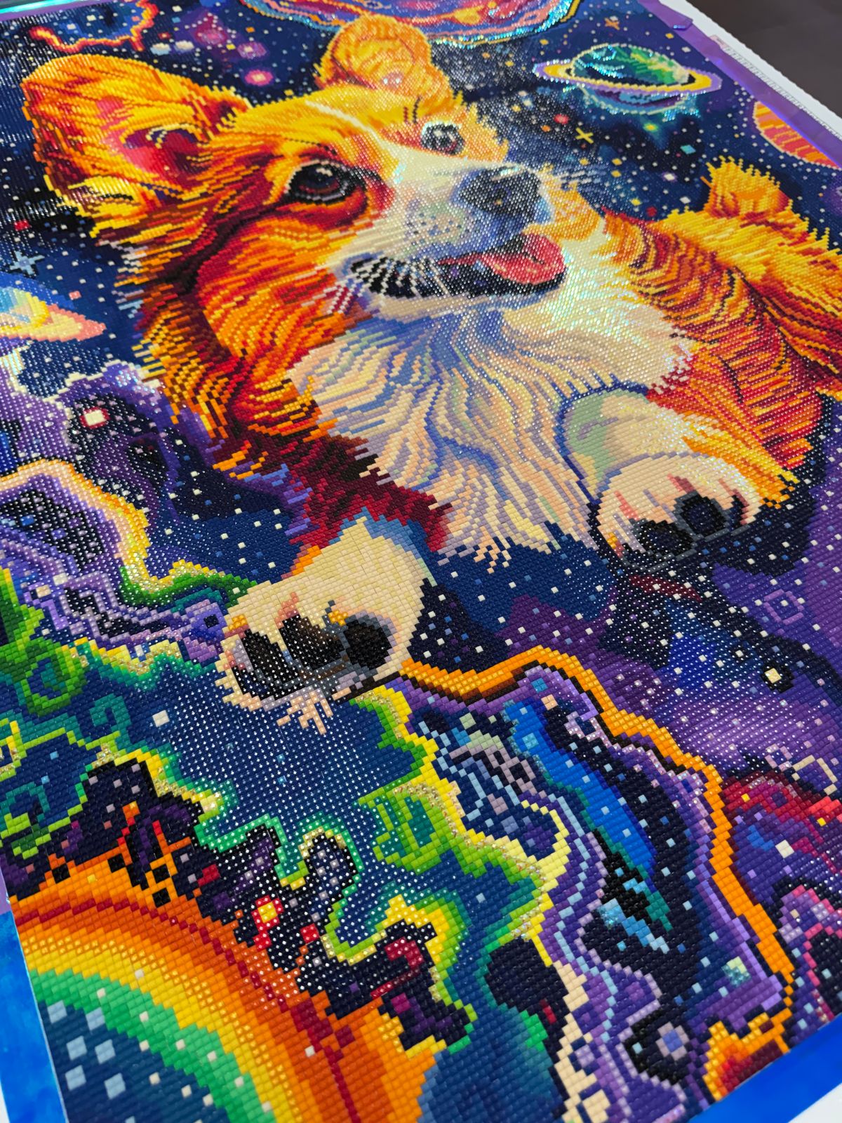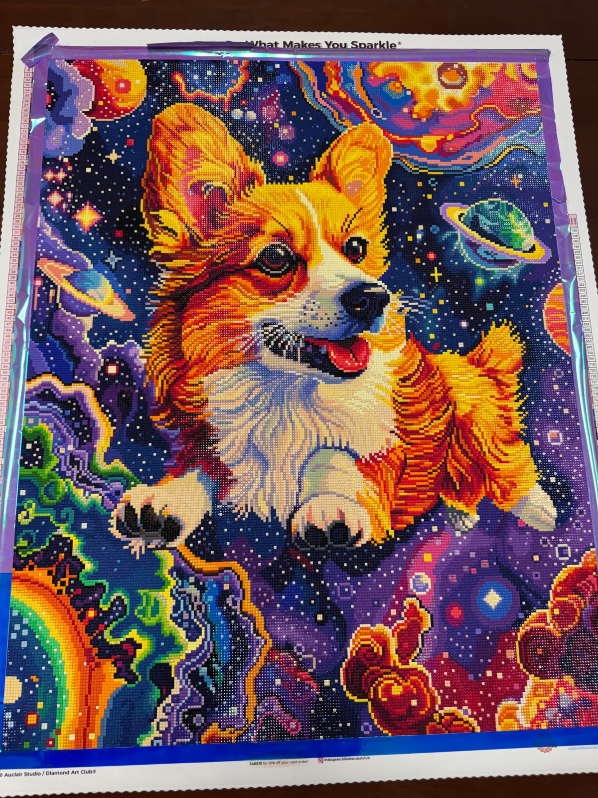 This diamond painting was a joy to complete, I love the vibrant colors and the cute little corgi! So much fun!