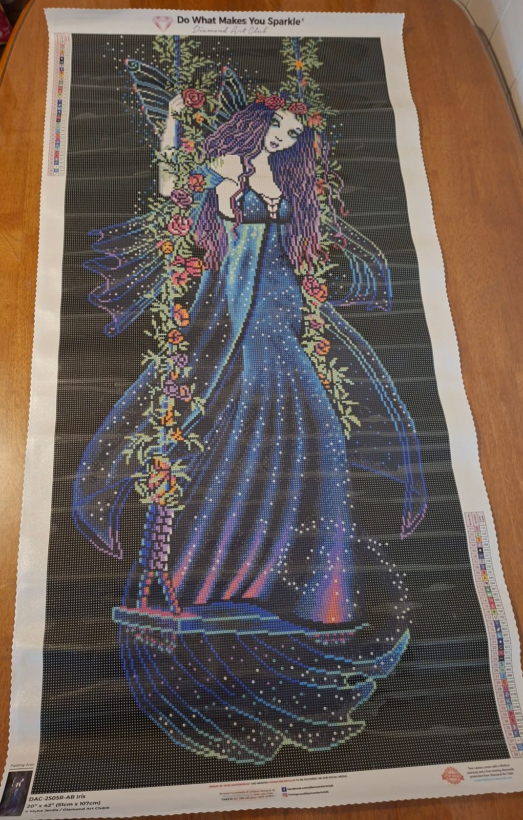 This is my first big diamond art painting and my first from DAC. I definitely didn’t pay attention to the dimensions when I ordered so I was a bit shocked to see the size but turns out I’m getting through it pretty fast and she’s absolutely beautiful! Can’t wait to see the finished product!