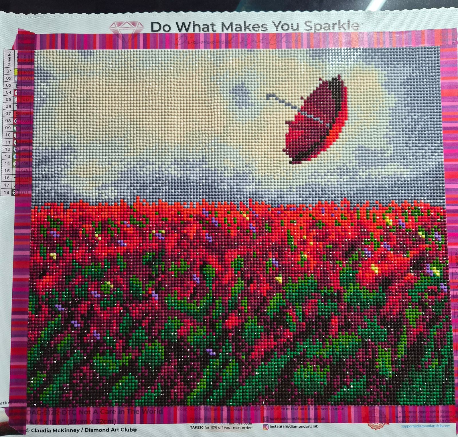 I love the reds in this Diamond Art picture. What a fun whimsical picture.