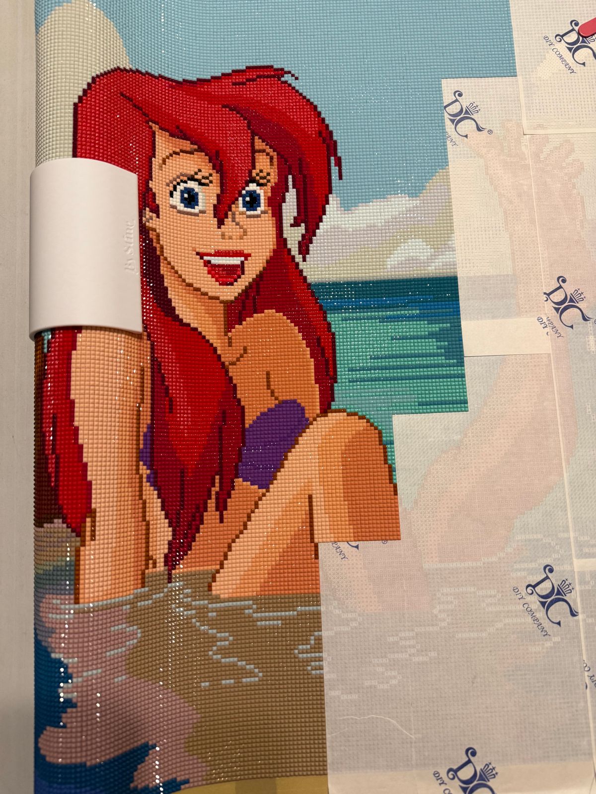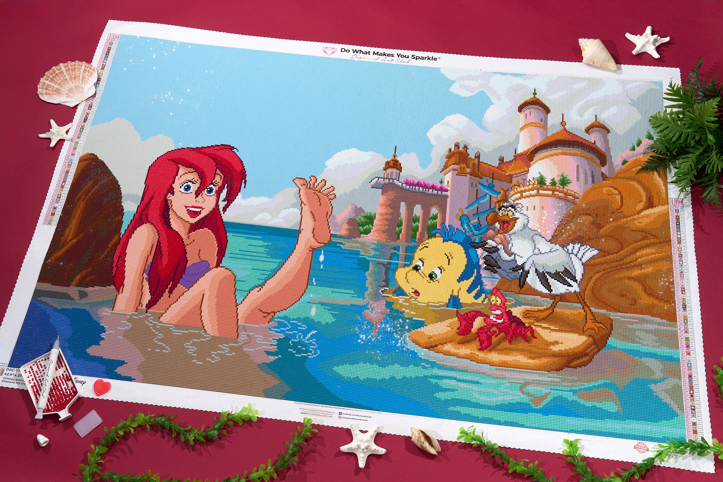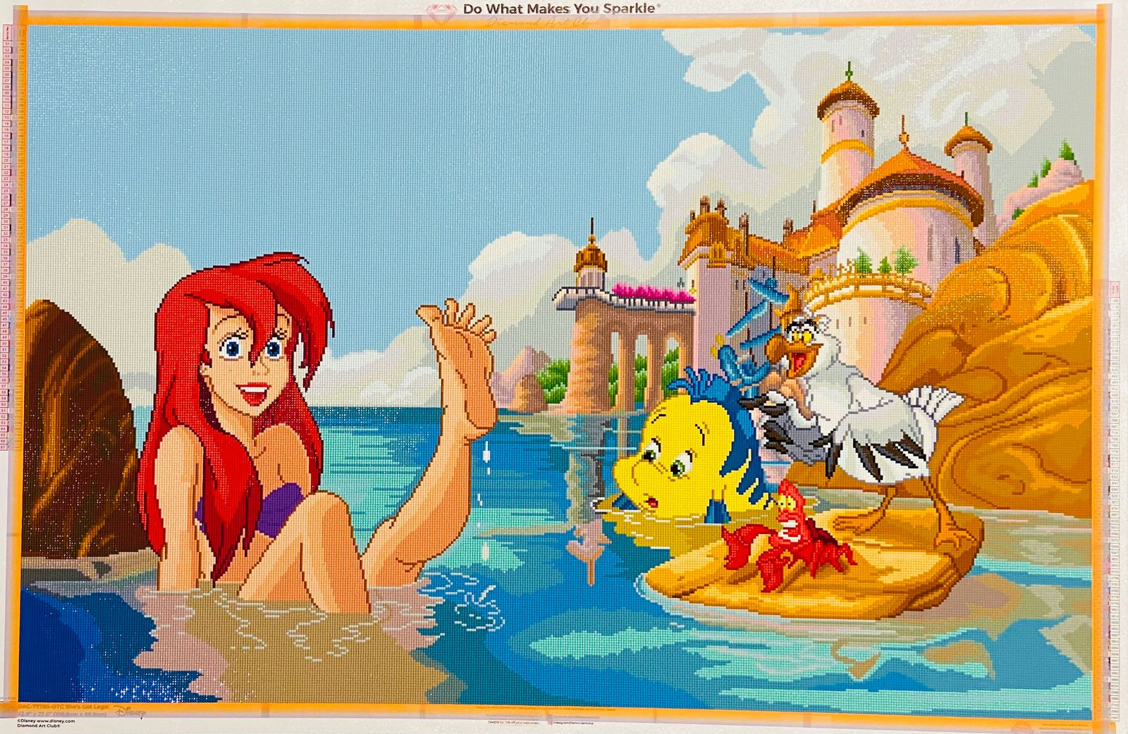 Este lienzo es el diseño de mis sueños. Ariel es uno de mis personajes favoritos de Disney y este lienzo lo tiene todo. Los personajes son maravillosos, el renderizado espectacular y el brillo es tan bonito que no pude resistirme. Además, el polvo de hadas le da un toque especial y la calidad de Diamond Art Club (DAC) es sin duda impresionante.