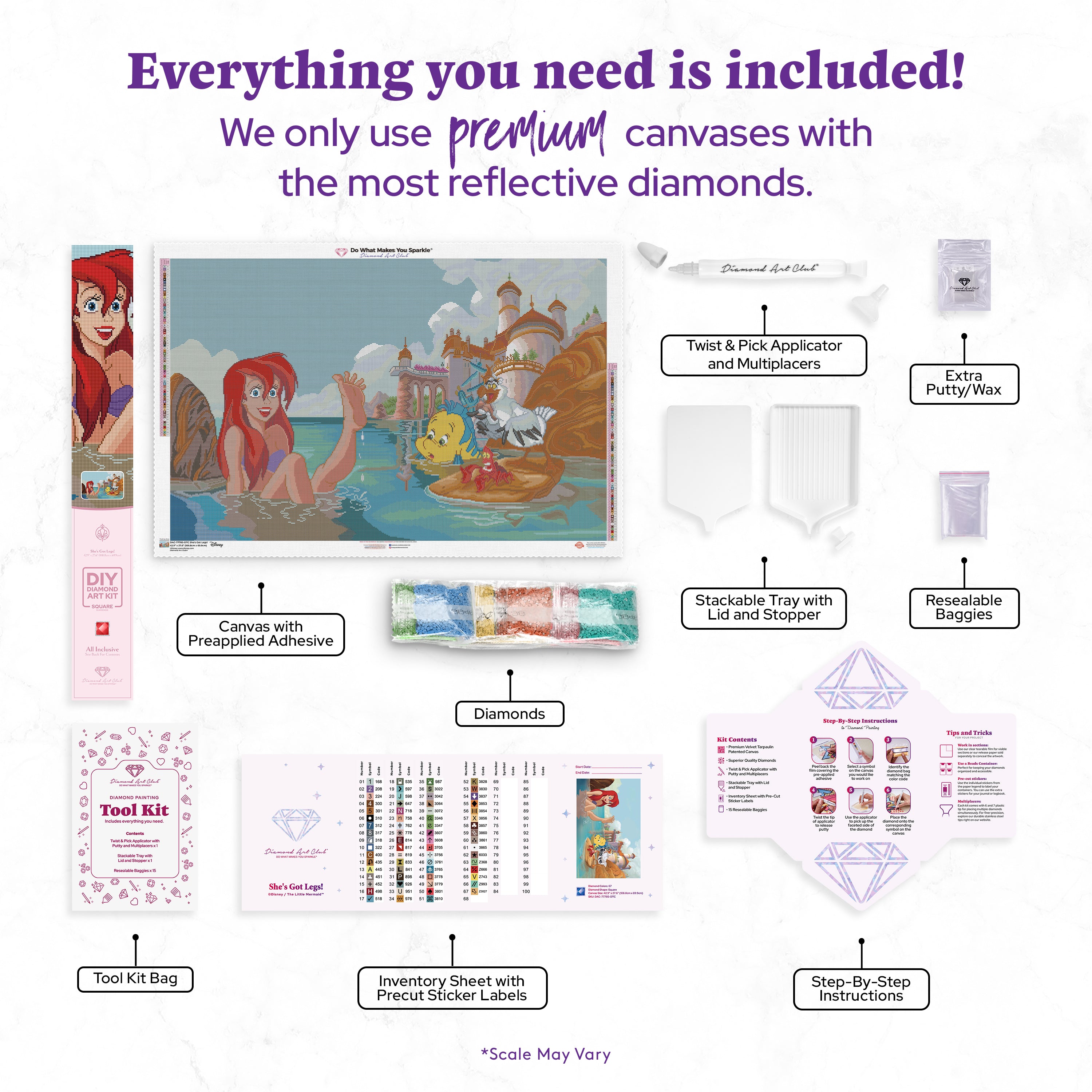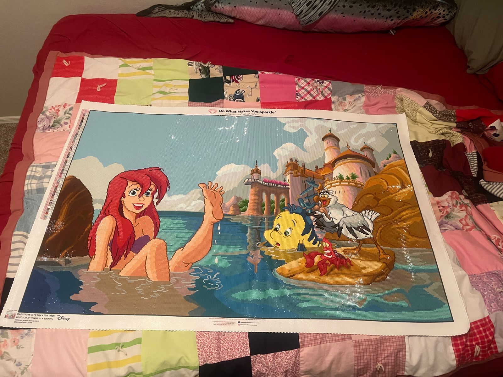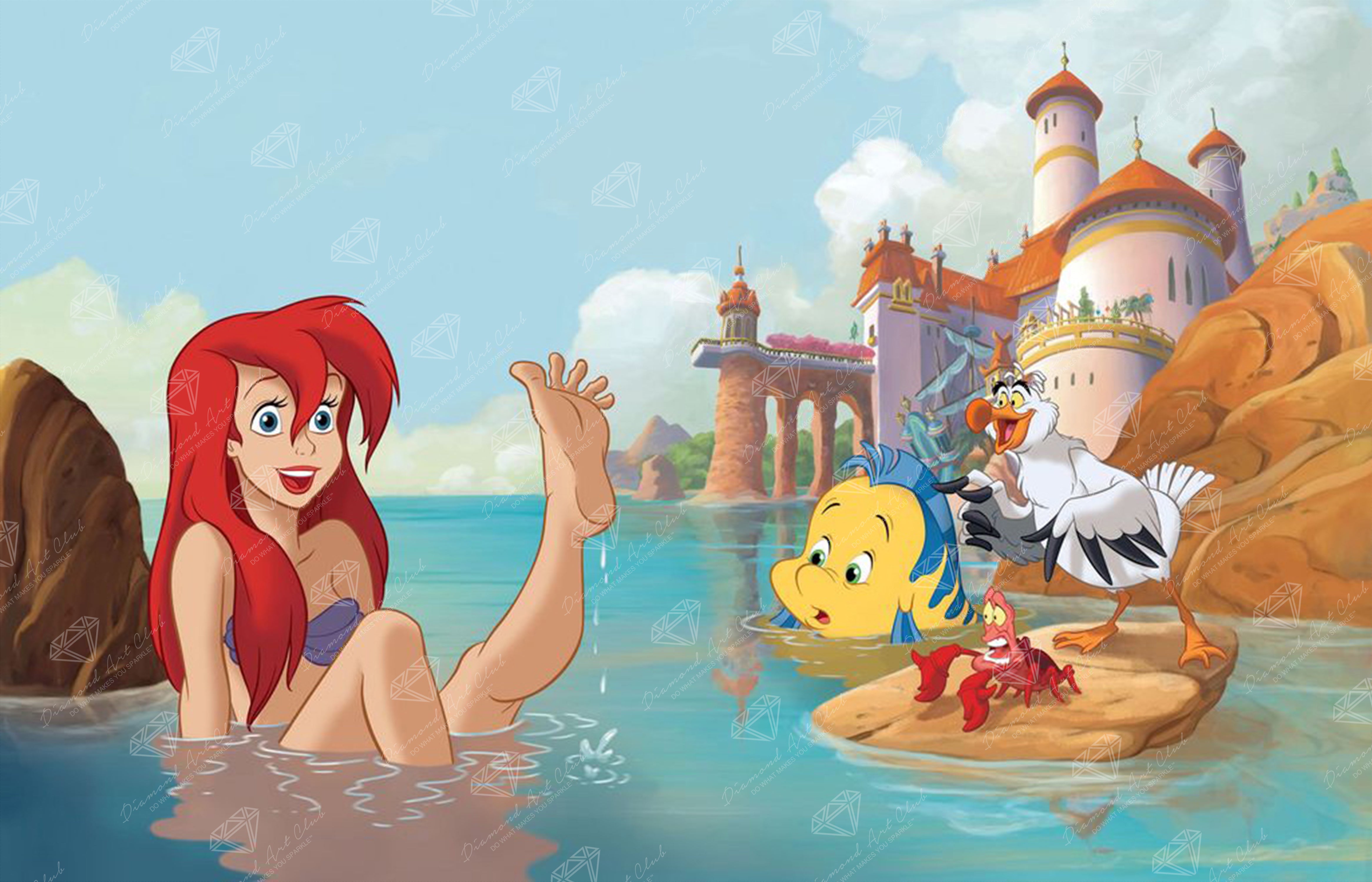 Este lienzo es el diseño de mis sueños. Ariel es uno de mis personajes favoritos de Disney y este lienzo lo tiene todo. Los personajes son maravillosos, el renderizado espectacular y el brillo es tan bonito que no pude resistirme. Además, el polvo de hadas le da un toque especial y la calidad de Diamond Art Club (DAC) es sin duda impresionante.