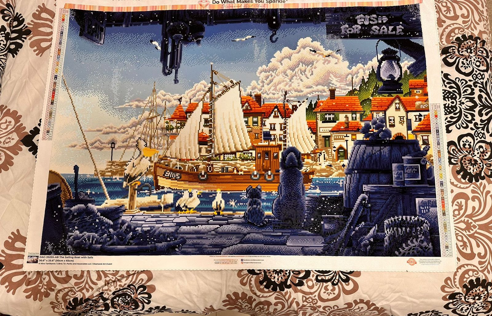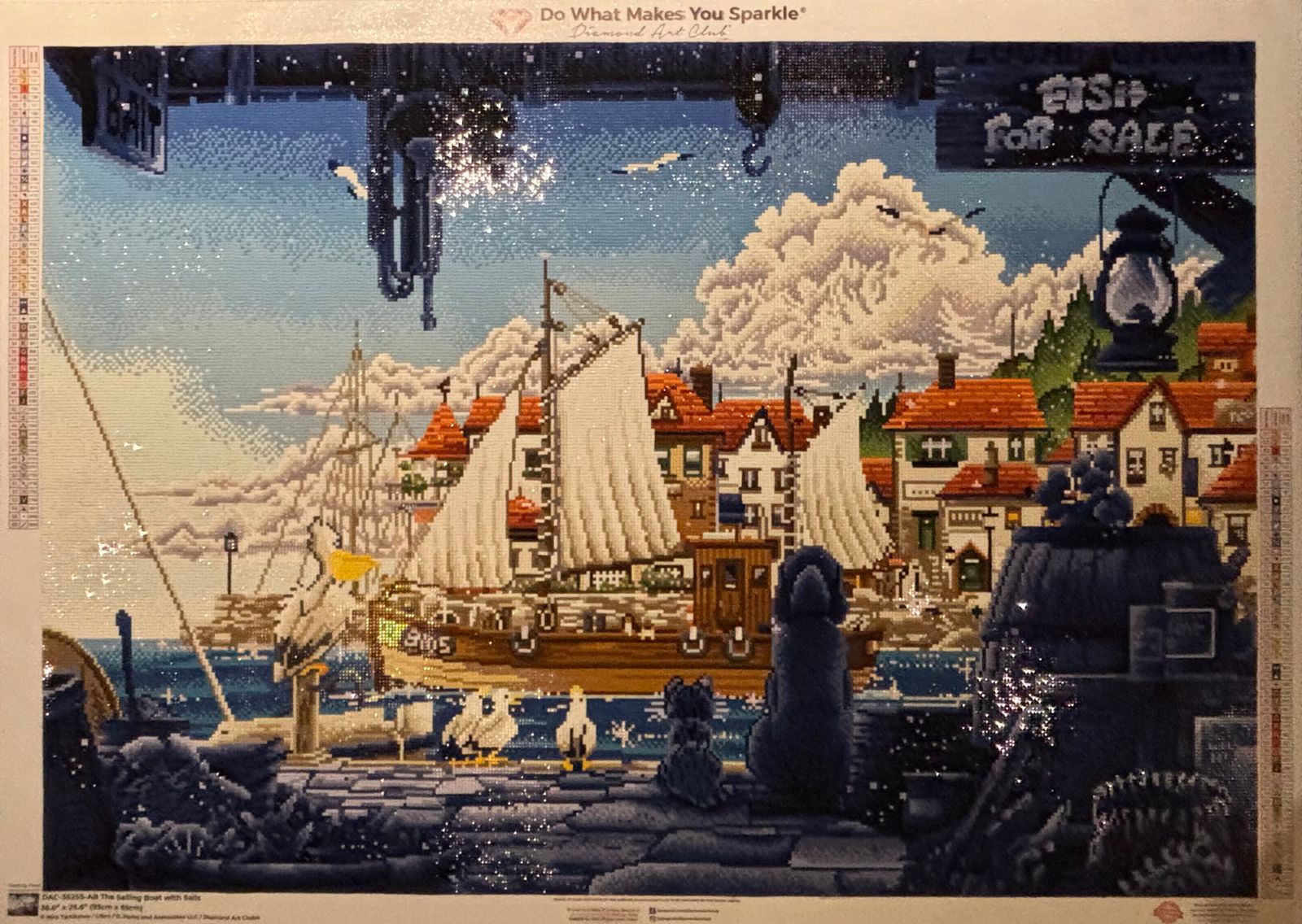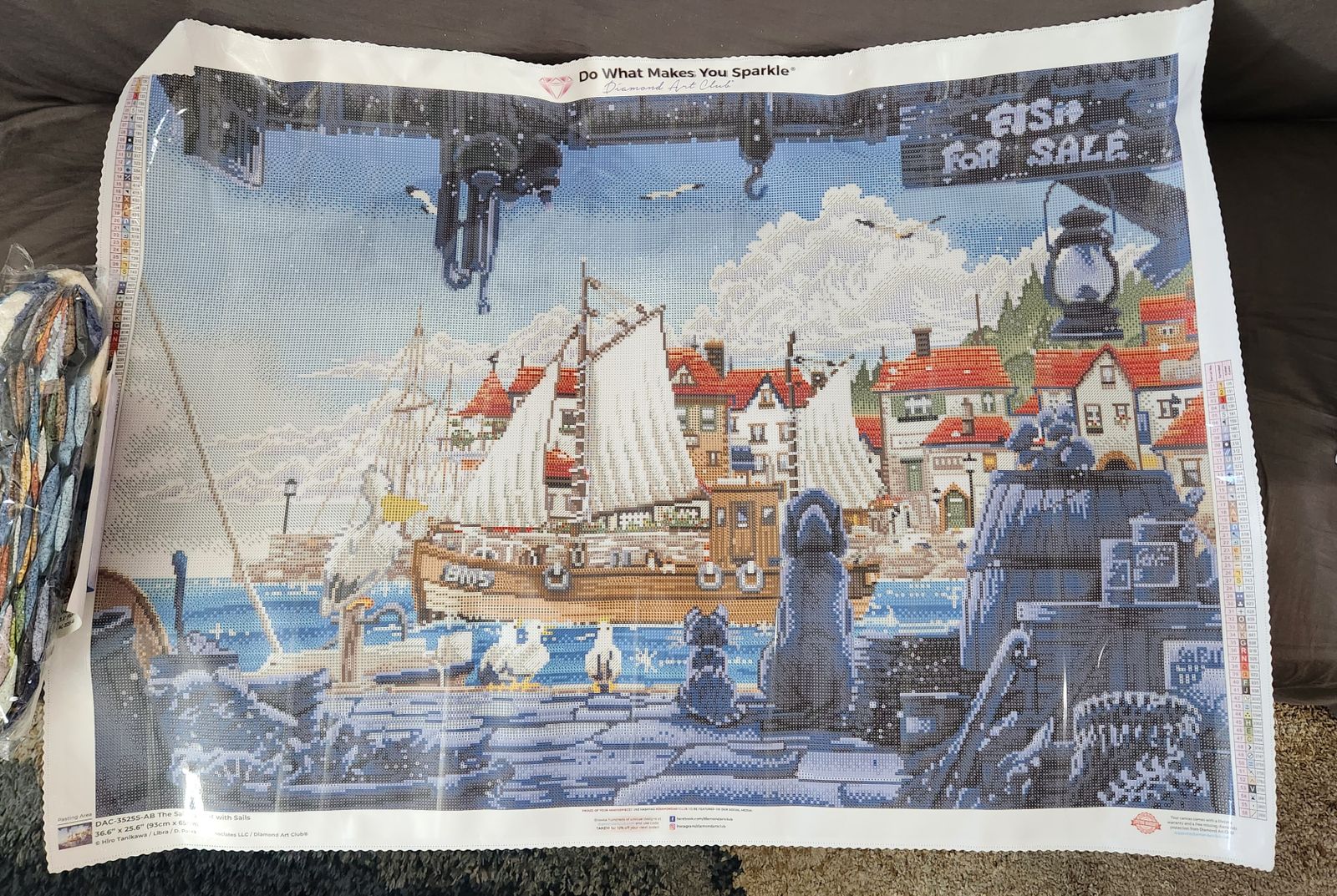 I feel like I'm one of them sitting in the dock just chilling while watching the sail boats pass by. I had my eye on this for months and got it when I saw someone post a finish. The rendering is great and I like a mix of confetti & color blocking. I look forward to working on it soon.