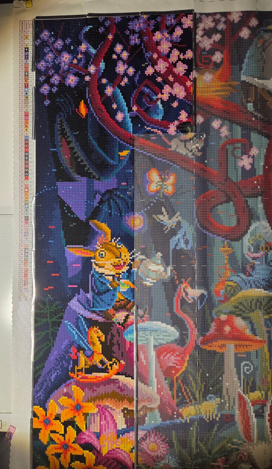 This canvas it s huge but working on it it s so pleasant due to beautiful, vivid colors and all the details that are hidden in every section. It will take me some time, but I can t wait to finish it.