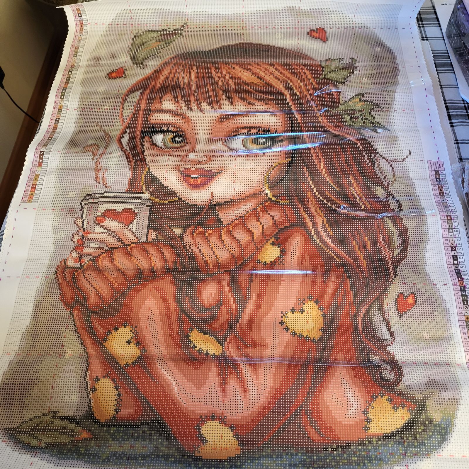 Absolutely stunning when finished. I love coffee and these rich warm colors! Her face was amazingly rendered. I can not say enough good things. I was so glad I purchased before it was archived!