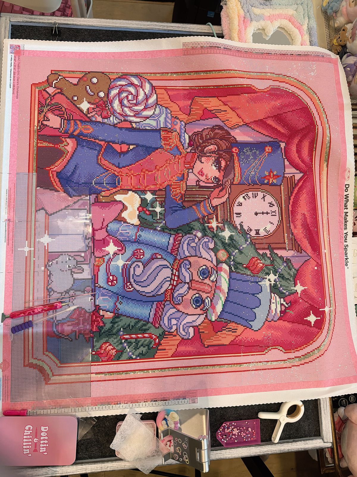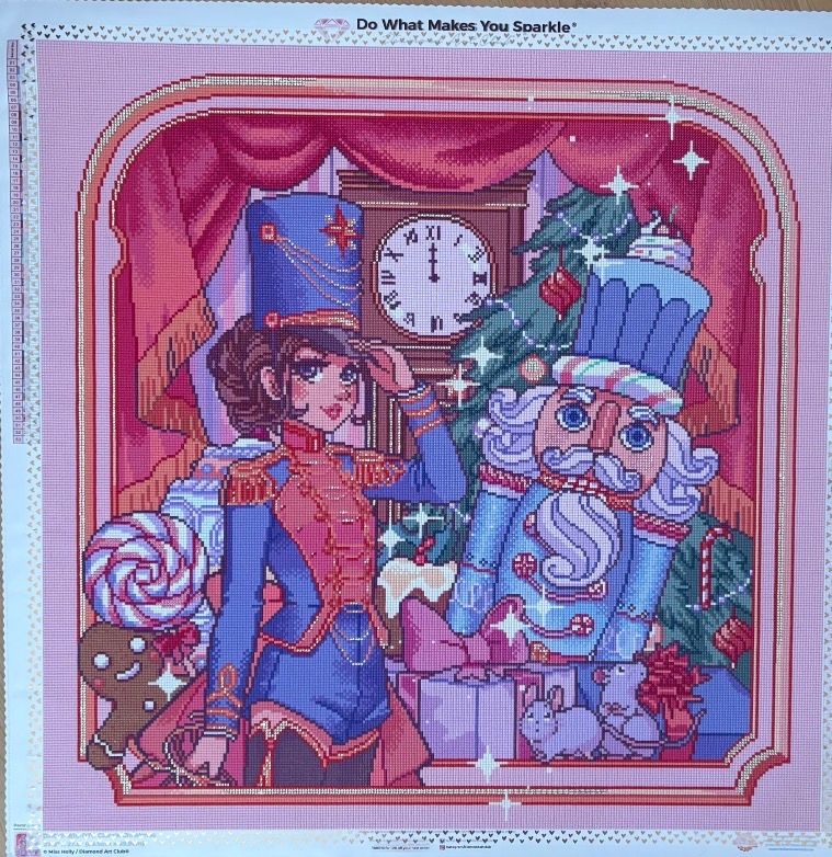I loved loved working on this. The only thing I am sad about is that I didn't bling this up more. This was really easy to work on. It was the perfect mix of color blocking and confetti. I would do this kit all over again. One of my favorite shows as a kid was the rockettes. This painting is on the heavier side. I used 2 thumbtacks to hang this up. I had no issues with the glue or the drills. I didn't run out of any colors and had PLENTY left over.