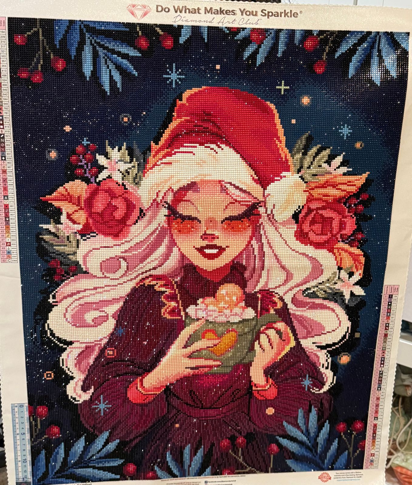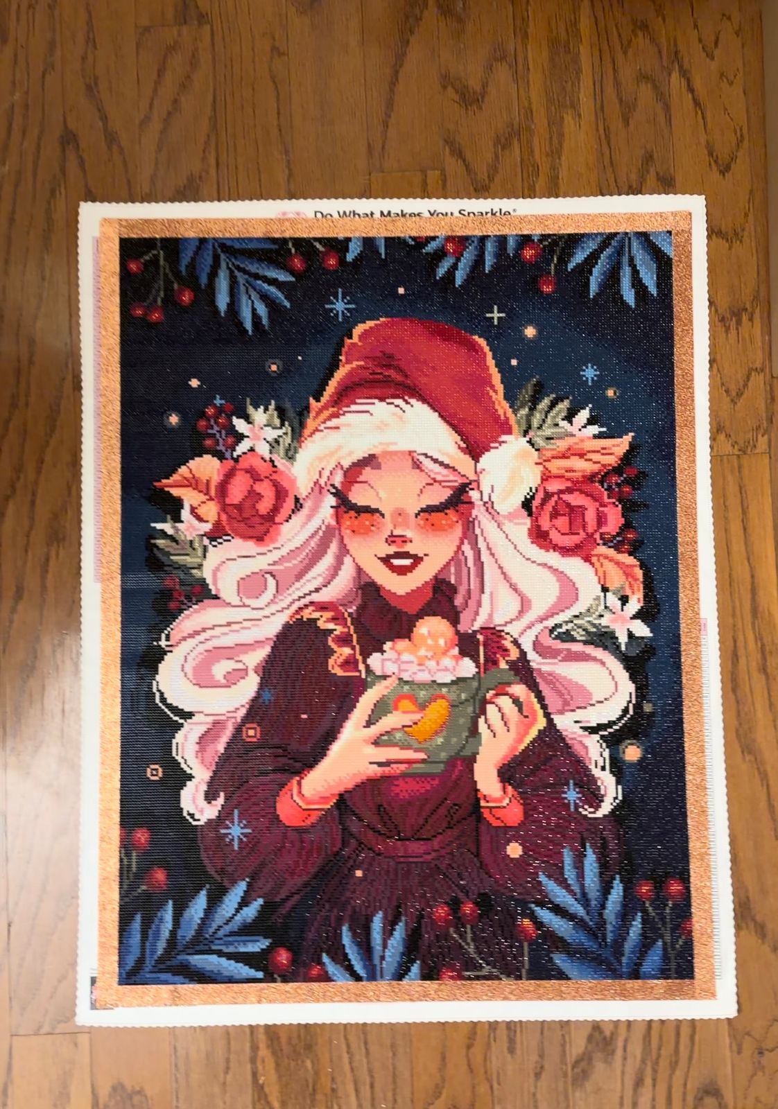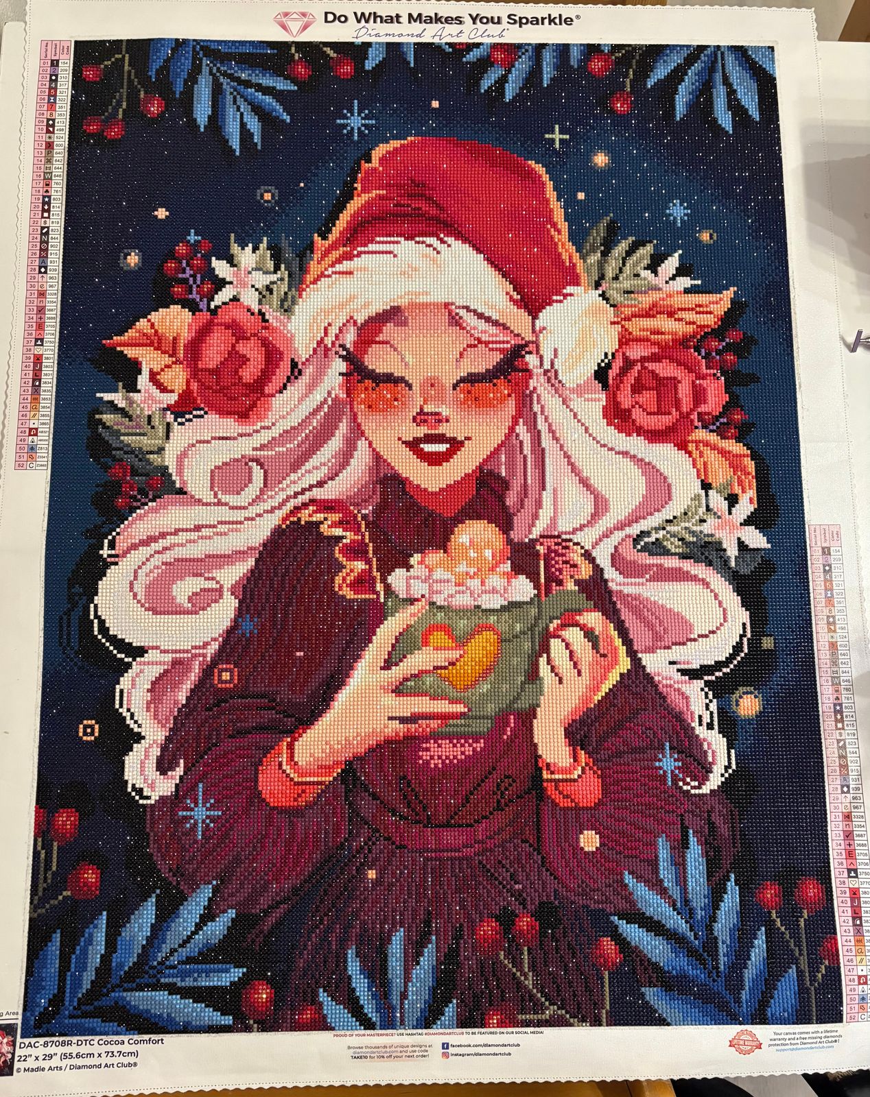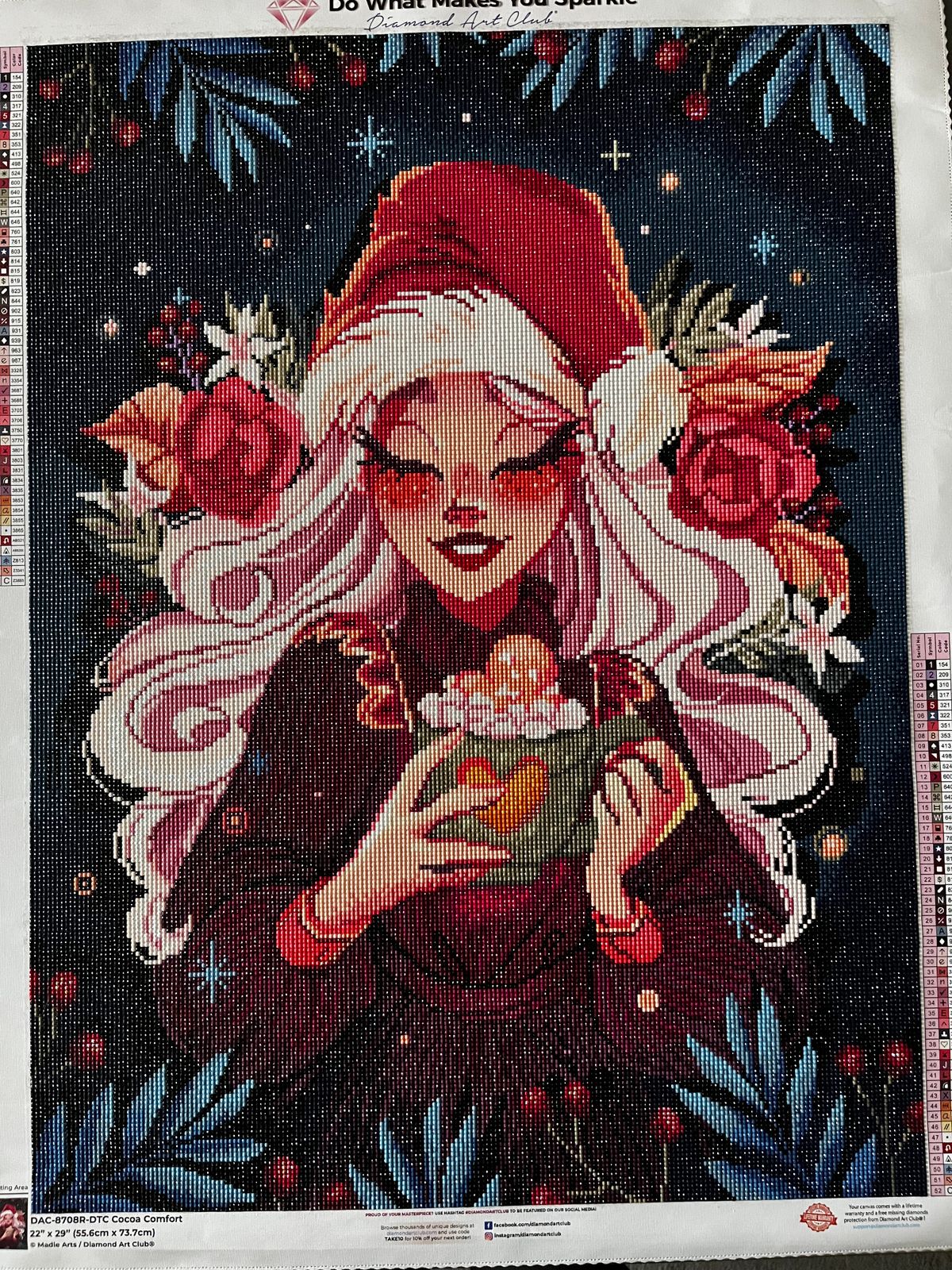 Such a fun one to do during the holidays and she turned out beautiful. Good size canvas and quality was great as always. Colors were also fun, adding some blues and light peaches, in with your traditional holiday colors. Love the artwork and recommend it.