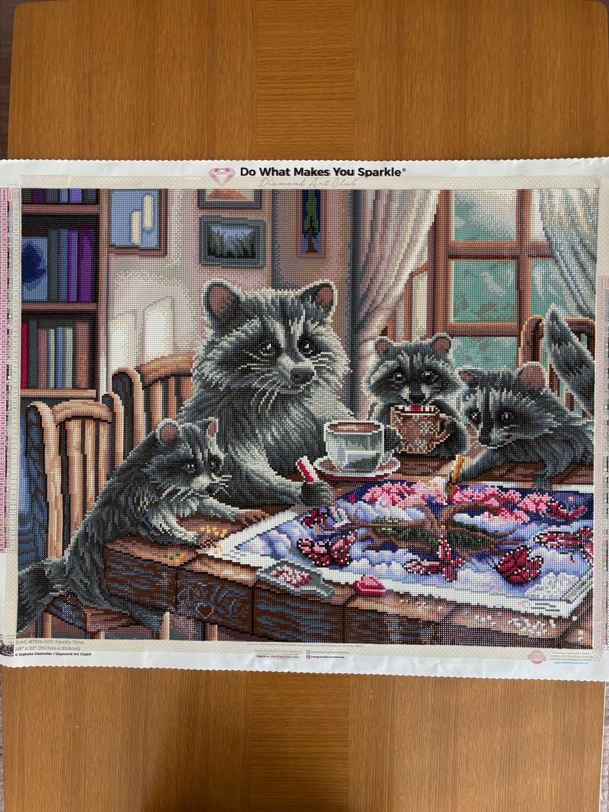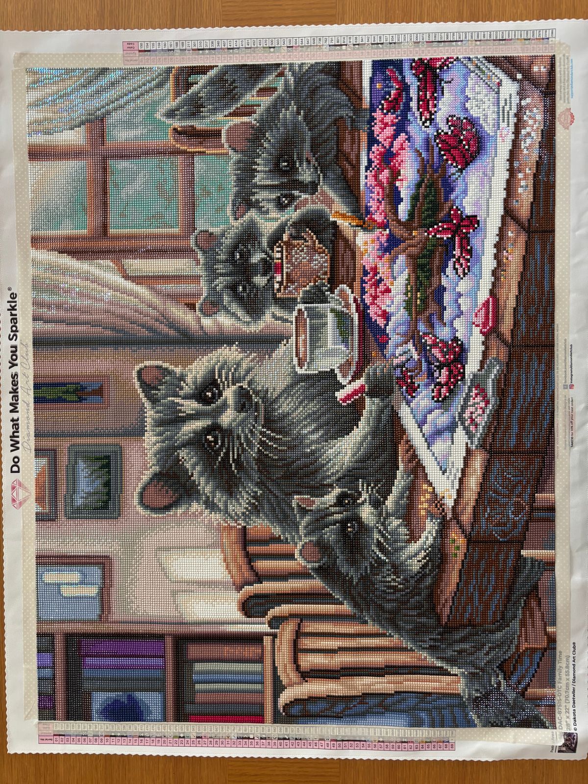 Gather around the table with furry friends sipping cocoa and working diligently. Diamond painting is for everyone– transforming an ordinary afternoon into a magical memory filled with sparkling wonder!