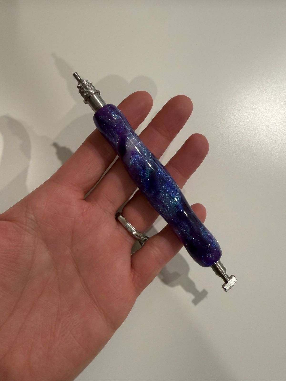 This is by far my favorite diamond art pen. The shape makes it comfortable when I’m working on a painting project for hours and never running out of wax is a huge plus. I put a 3 placer on the other side. The length of the pen is a little shorter making flipping it easier.