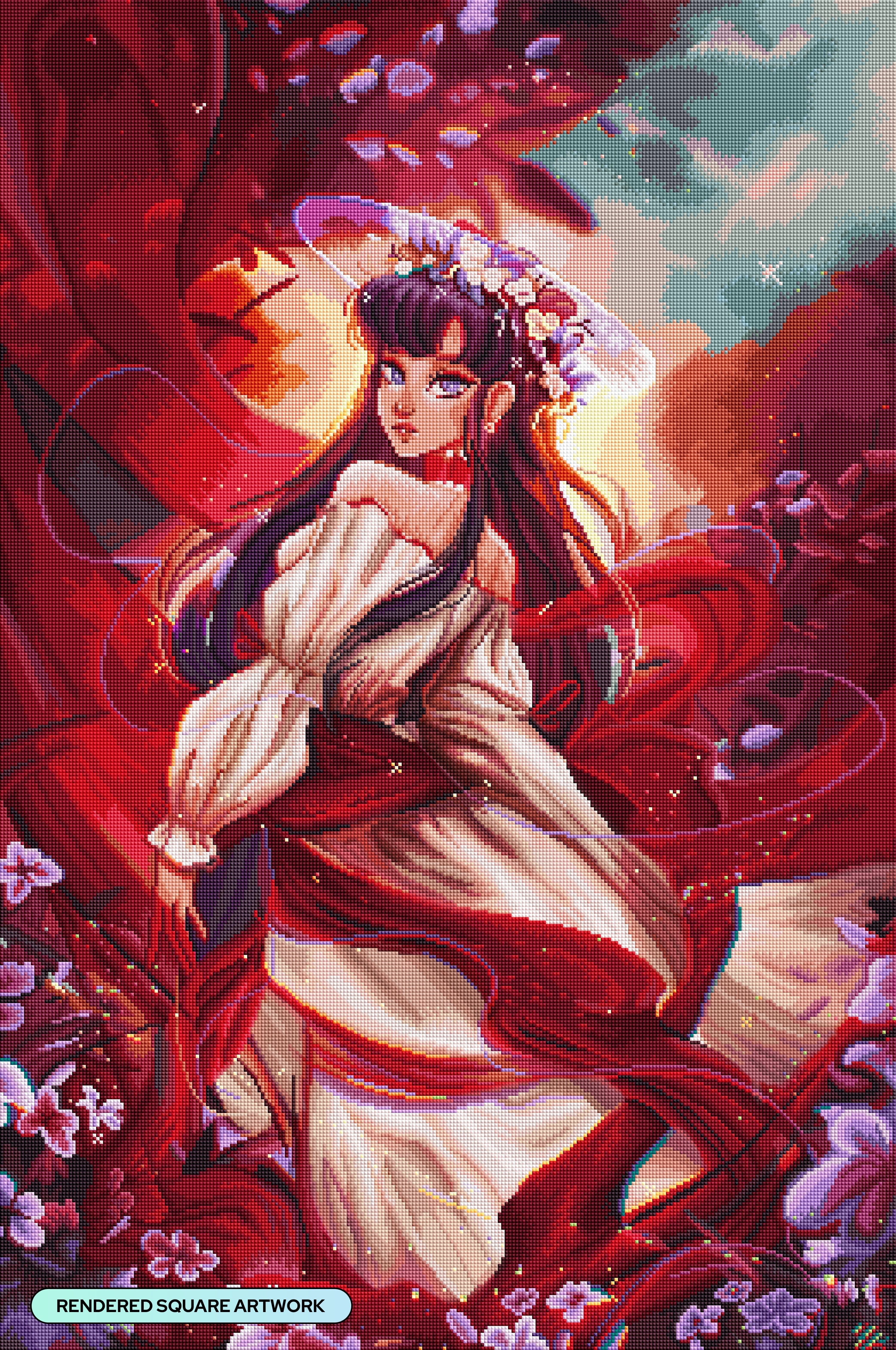Wrap yourself in rich red swaths of temptation and strength. Amid a sea of petals, turn with grace and fire, capturing hearts and winning every battle.