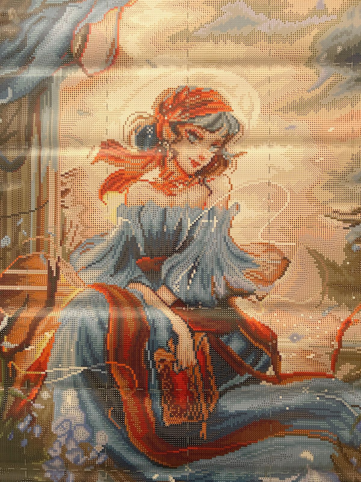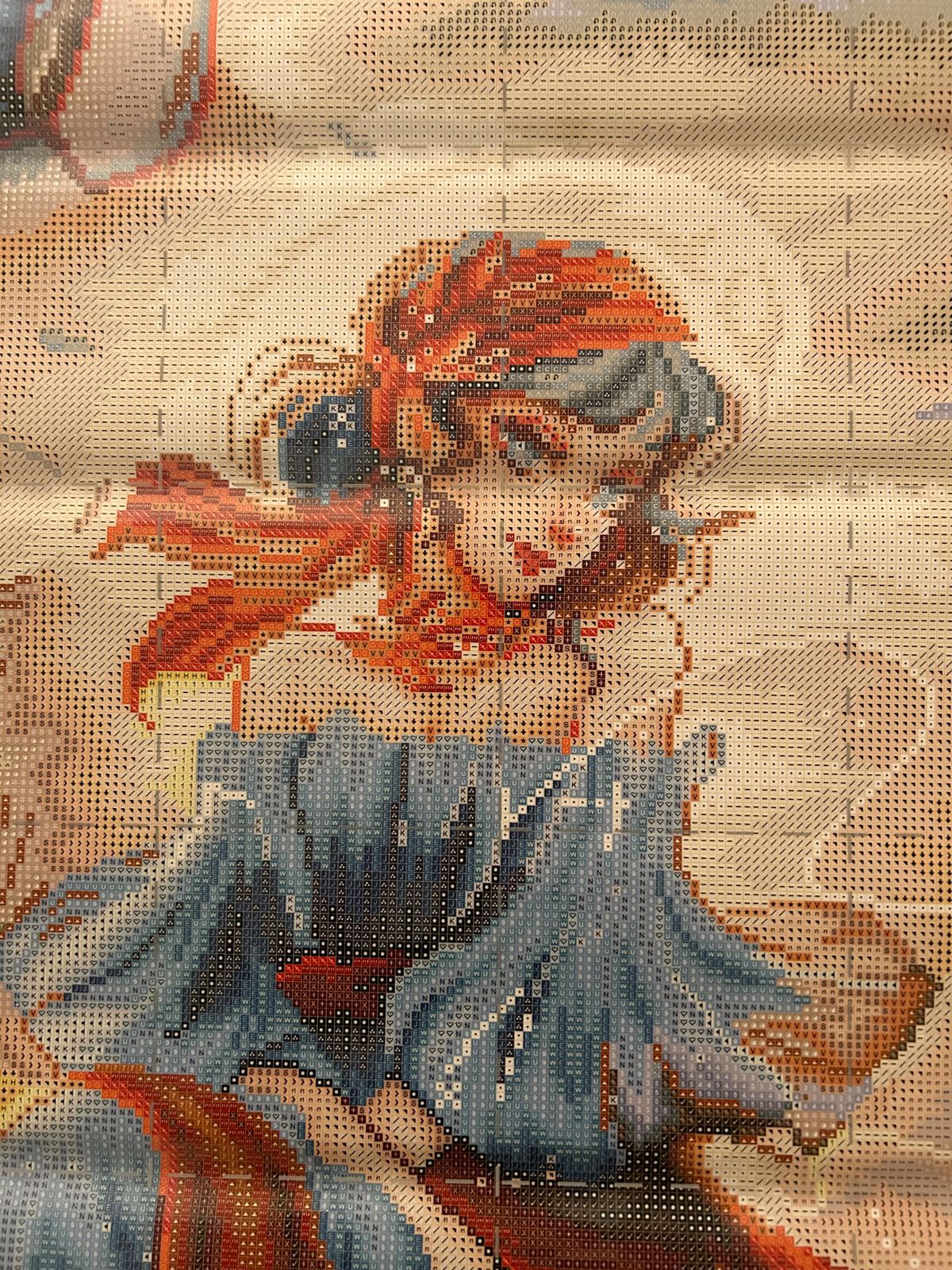 A beautiful canvas with a lot of confetti! Love the effect of the halo of ABs around her head. I single placed this one, so it did take awhile, but excellent quality as always.