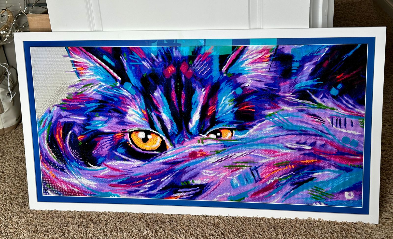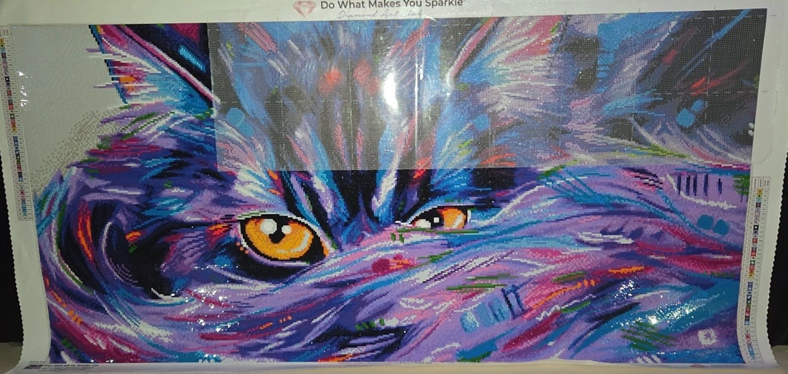 I did Abstract Cat about a year ago and loved how it turned out. So I decided to get the sister painting, Sneaky Cat. It’s beautiful, too. She’s huge and she sparkles bright. The color combination is perfect! Love it.