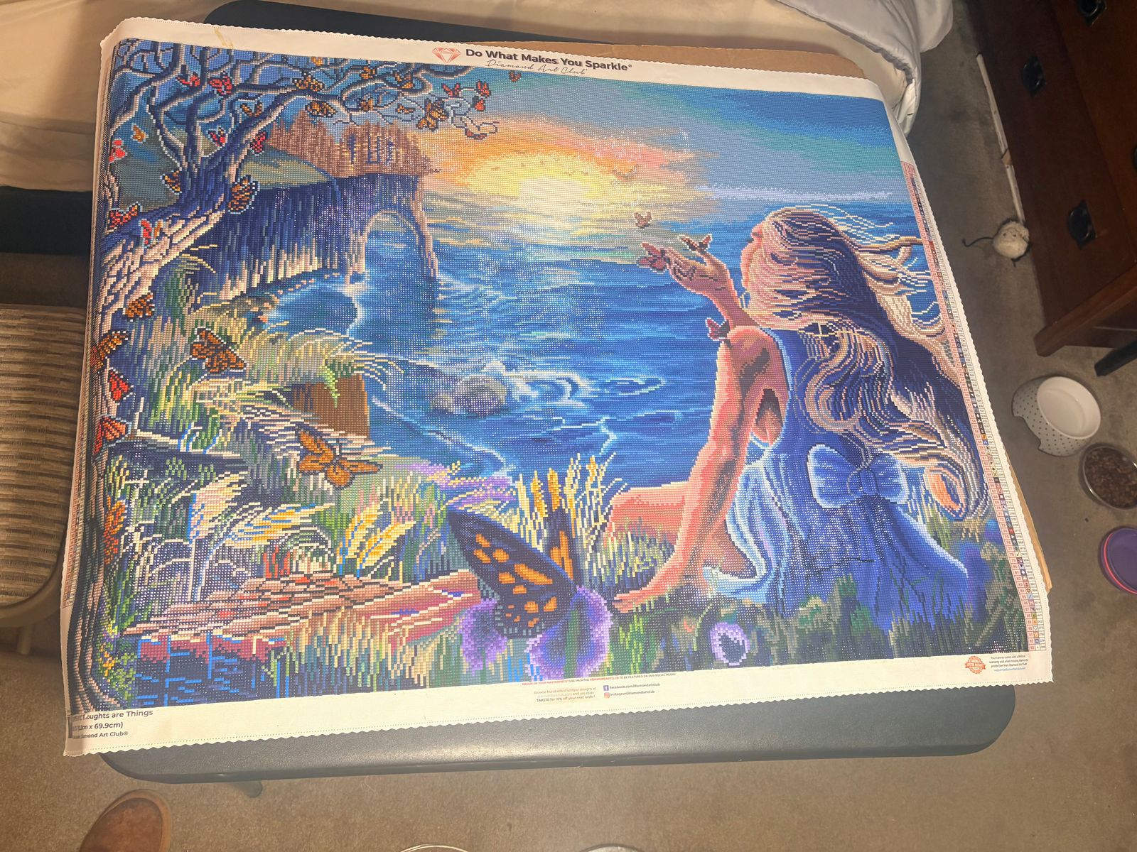 This canvas is stunning. A mixture of colour blocking and confetti. I loved every minute I've completing this canvas. Highly recommend this one. The quality of the drills the quality of the canvas the quality of the glue just stunning. Very very happy with this one.