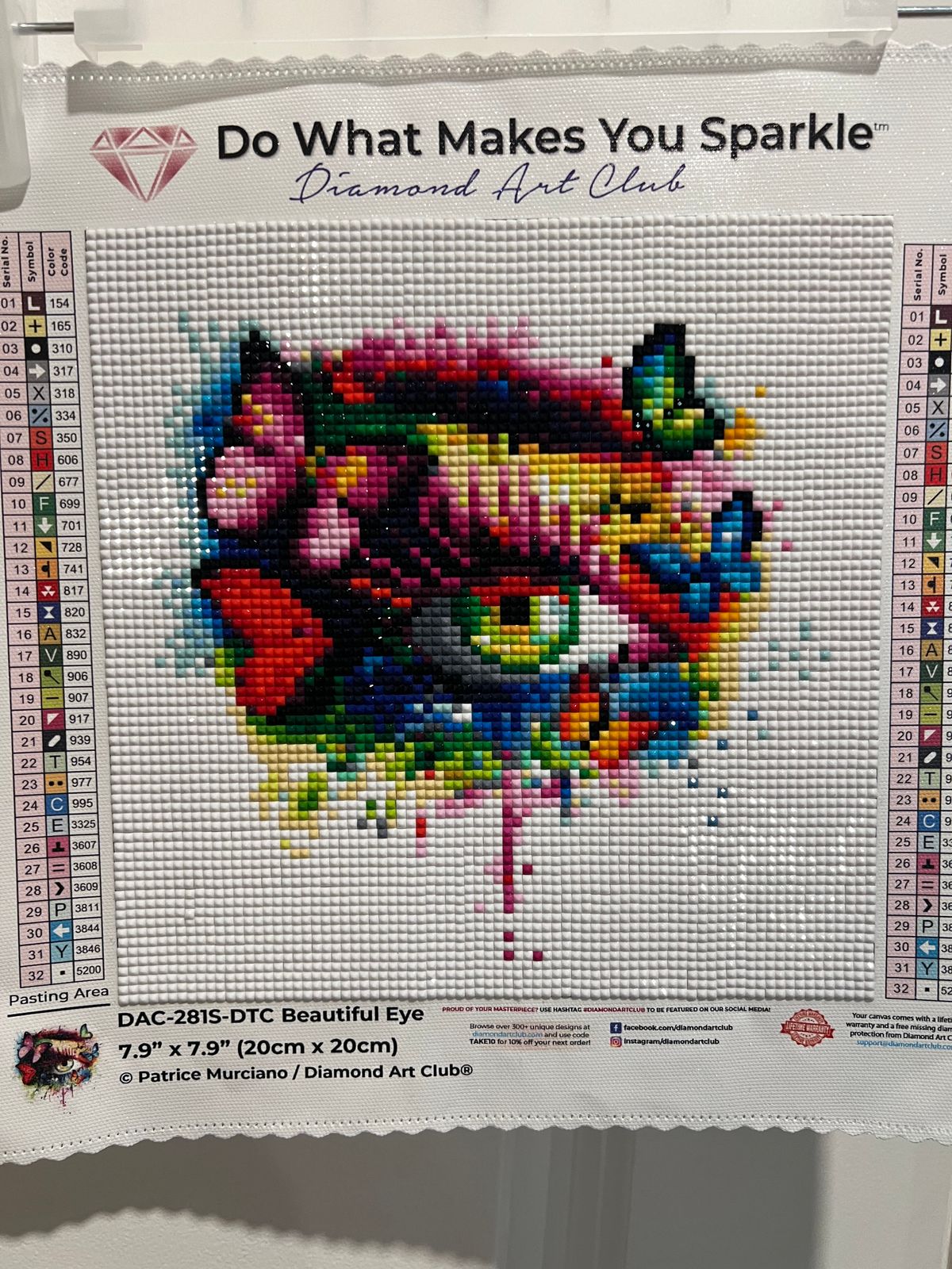 The eye itself is confetti heavy. Spent most of the time single placing this area. The white color blocking was fast and easy.