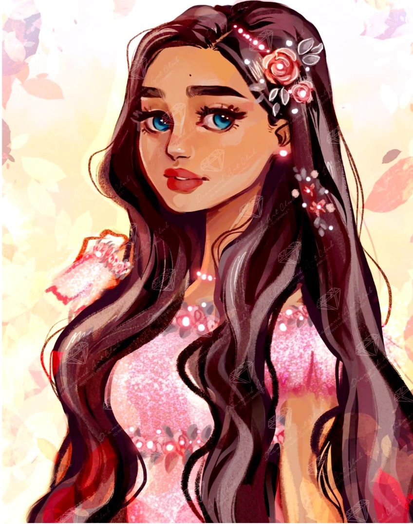 Meet this enchanting beauty adorned with blossoms and a gaze that captures the heart. Her presence is like a flower opening in a magical garden, radiating warmth and elegance.