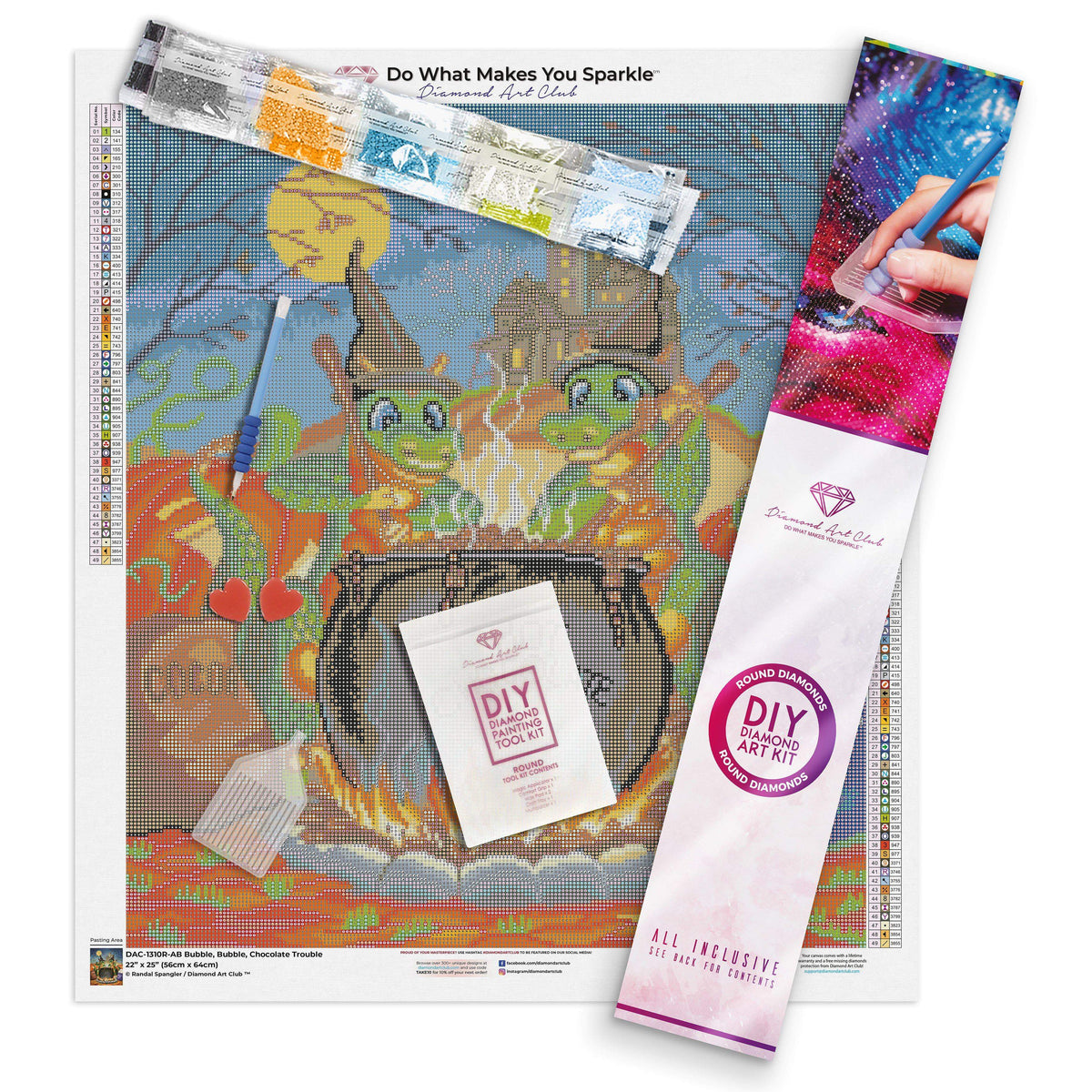 Adorable Dewey and Dagmar brewing up some yummy hot chocolate!! What an awesome and fun Halloween image!! Drill field is clear, adhesive is even throughout. Colors are rich and vibrant, drills are gorgeous and sparkly!! Another winner from DAC!!