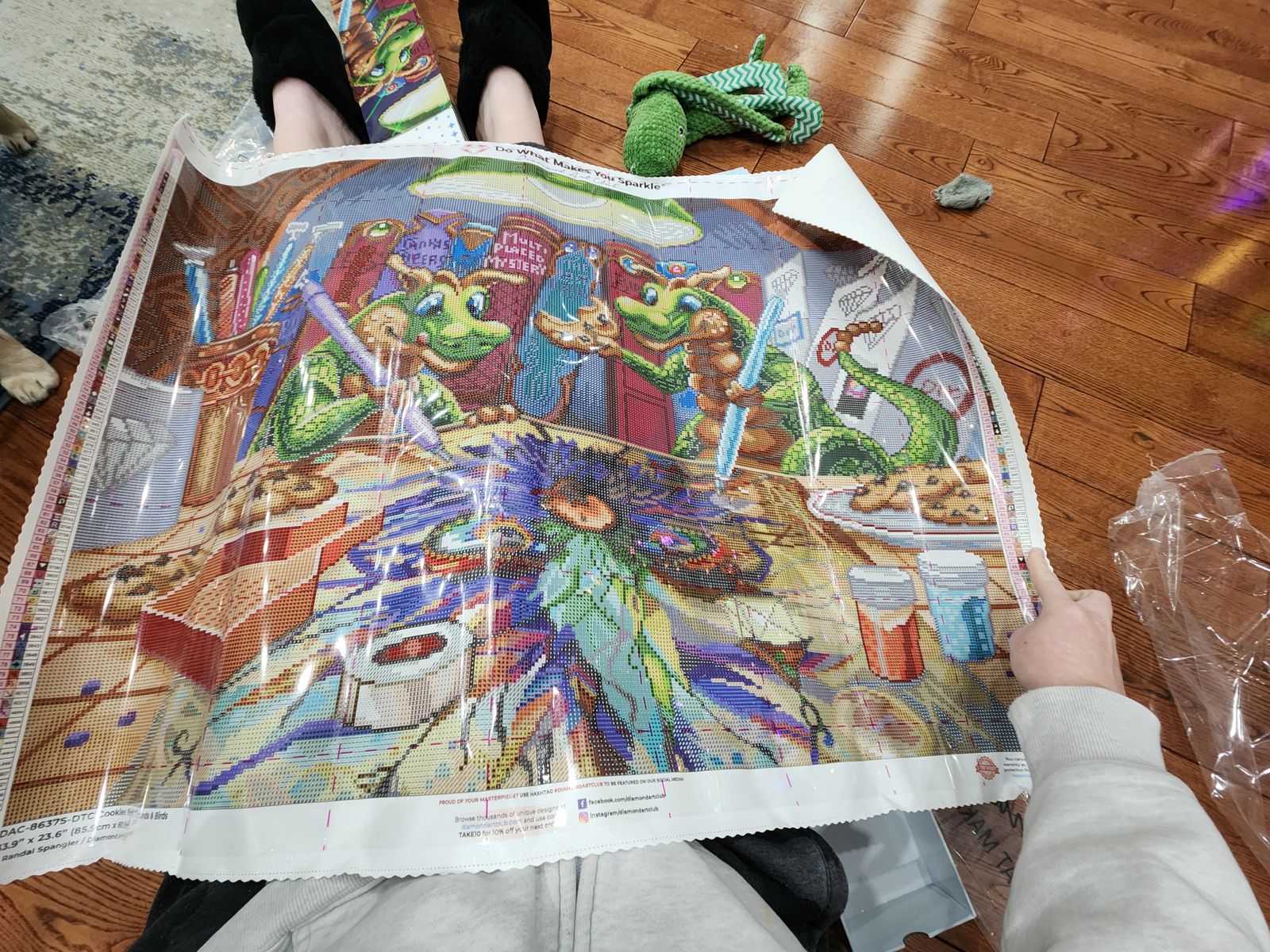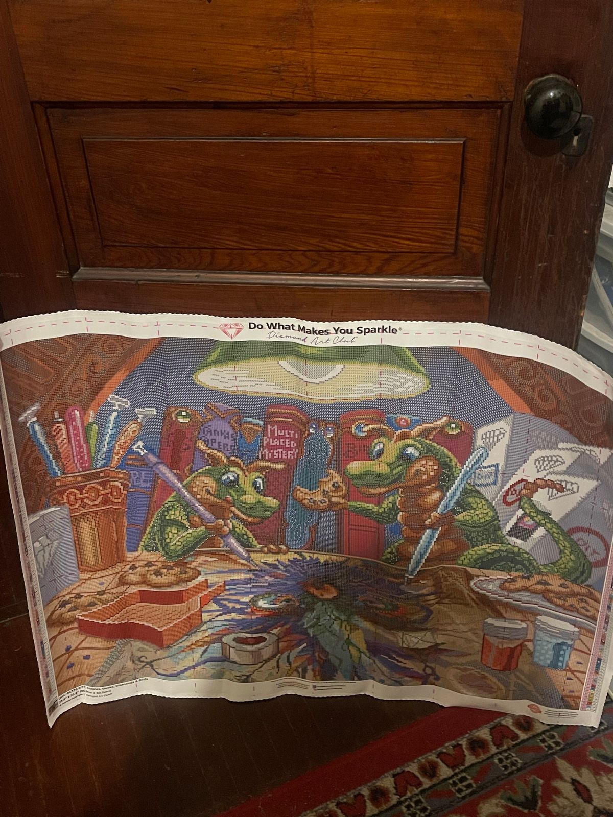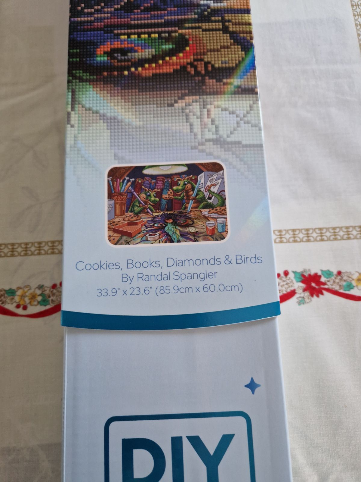What a fantastic idea to diamond paint within a diamond painting! The moment I saw it I knew that I had to have it. And it sits on üy desk, waiting for to be done.