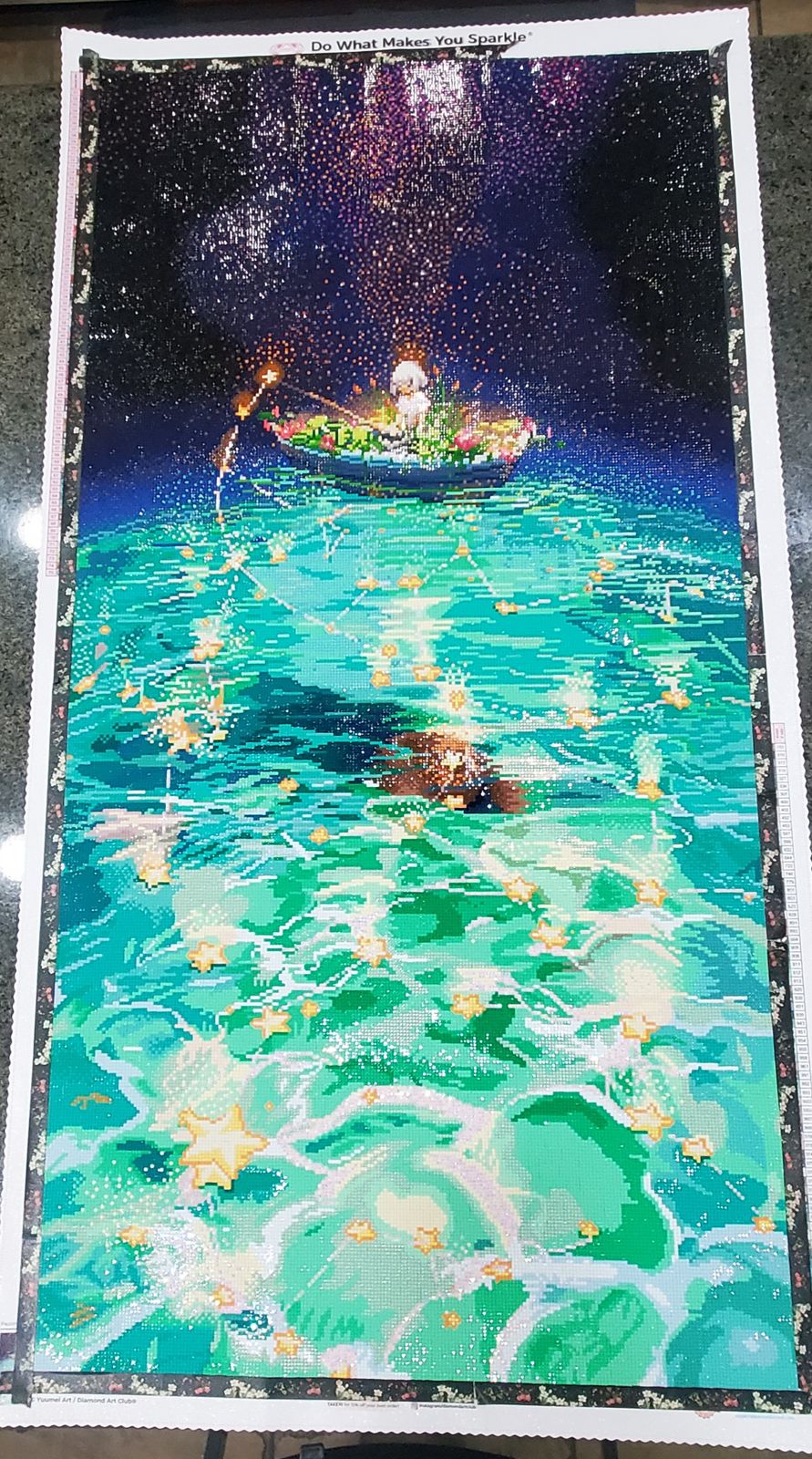 I love this Yuumei piece and waited for it to be made by DAC. Had fun completing it but unfortunately the center image is just way too pixelated for a painting this size in my opinion.