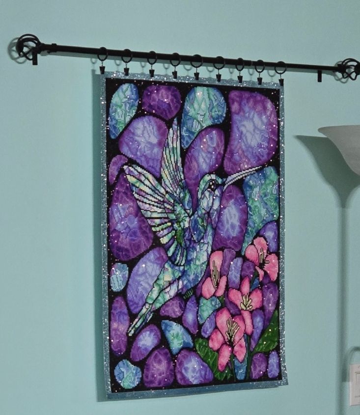 This has all the beautiful shades of blues and purples you could want and the hint of pinks make it pop. I truly enjoy working on the hummingbird it is spectacular the colors are amazing I just love it. This her me is in remembrance of my sister her favorite colors and her favorite bird. So it will have a special place in my heart