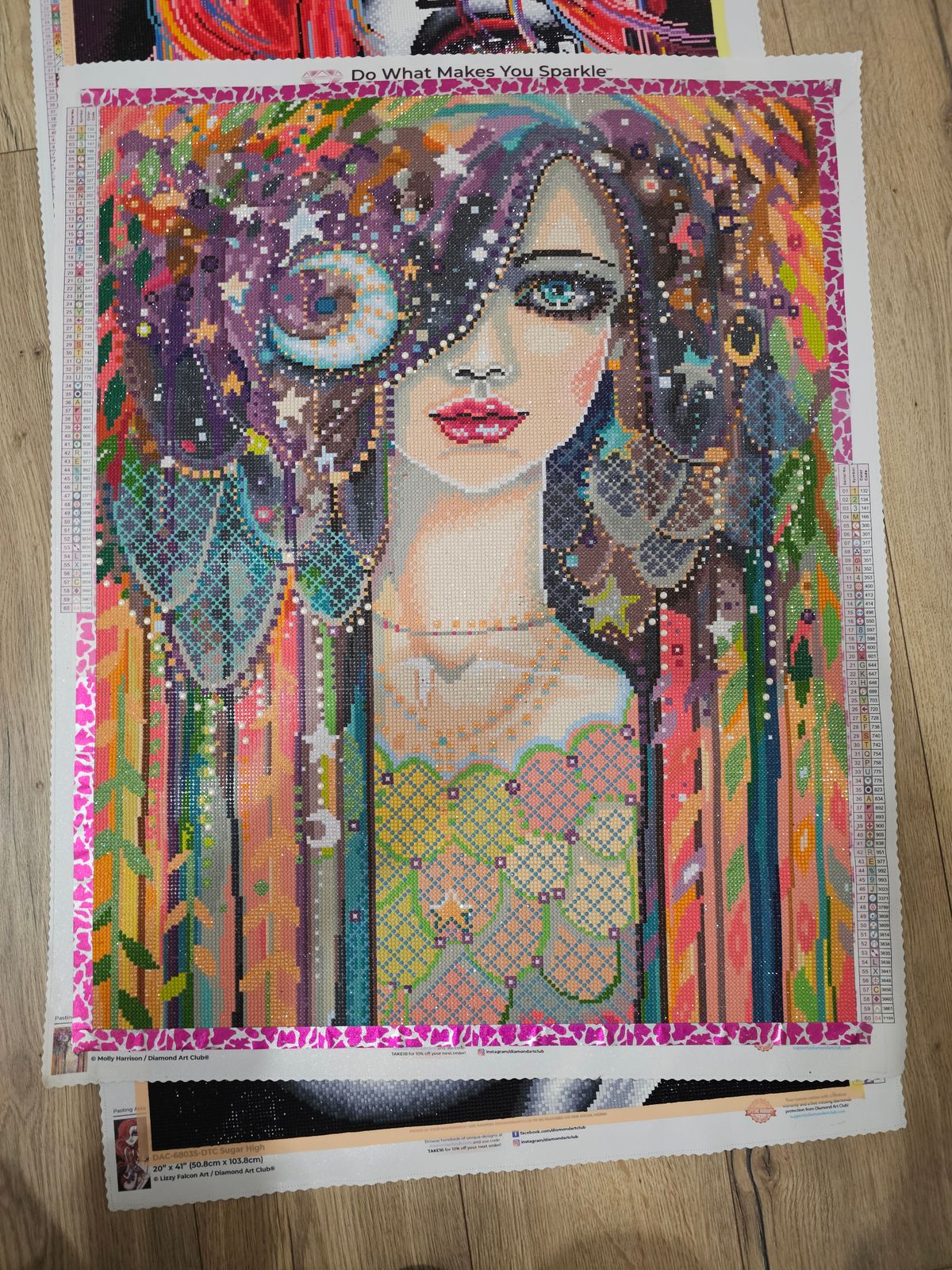 Galaxy Girl is my favorite DAC canvas, thanks to the AB drills and extra-large pearl accents. The sparkle and vibrant colors are absolutely out of this world! I’ve now displayed her on my wall right by my diamond art table so everyone on TikTok can admire her during my LIVEs.