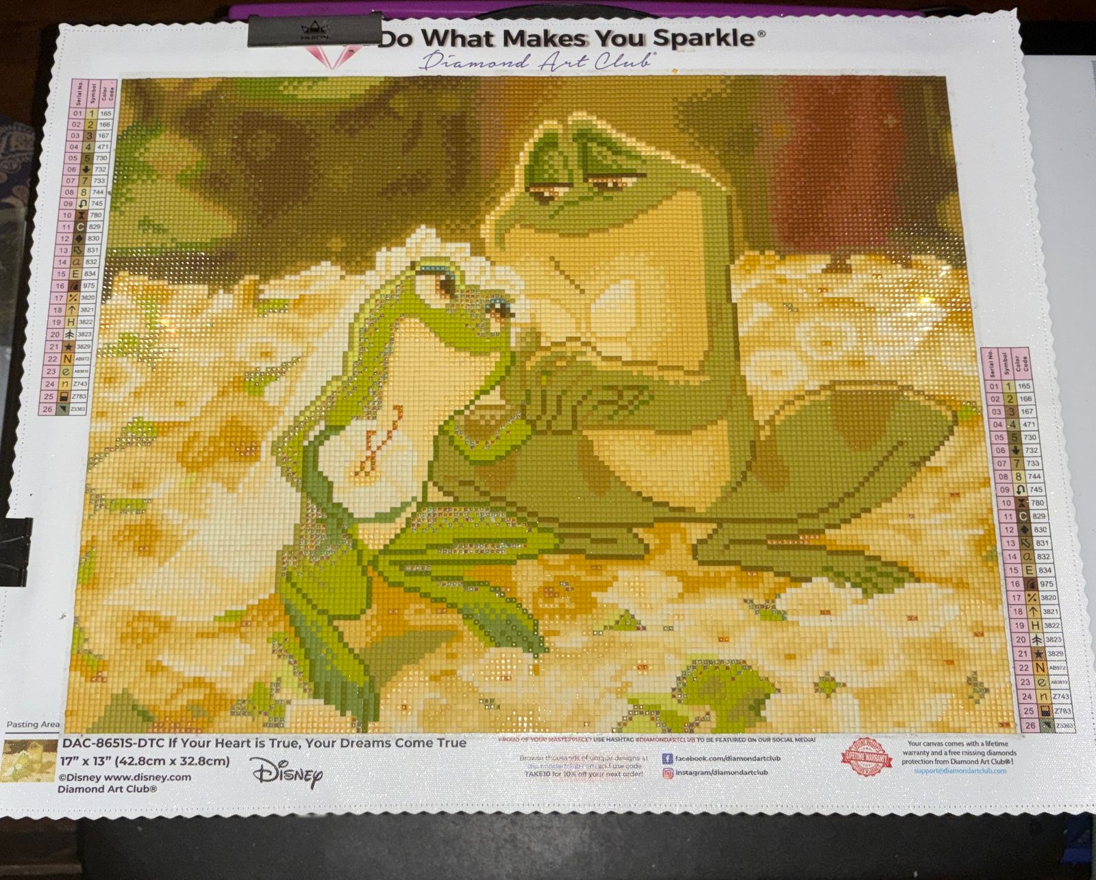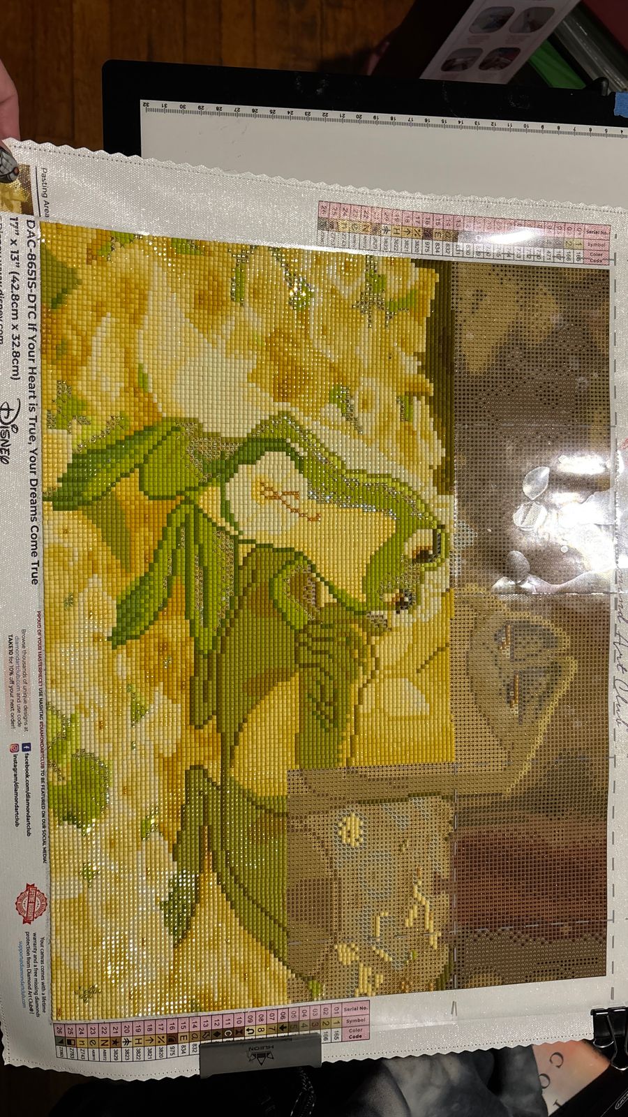 This is a lovely scene in this beloved movie. It's just a lil bigger than snack-size (17" x 13") & it has square & Fairy Dust drills. Glad that DAC got this one & wish they'd do more "Princess & The Frog" dp's. Wish they would do one w/all the characters ( or a majority). It'll be fun to do & display.