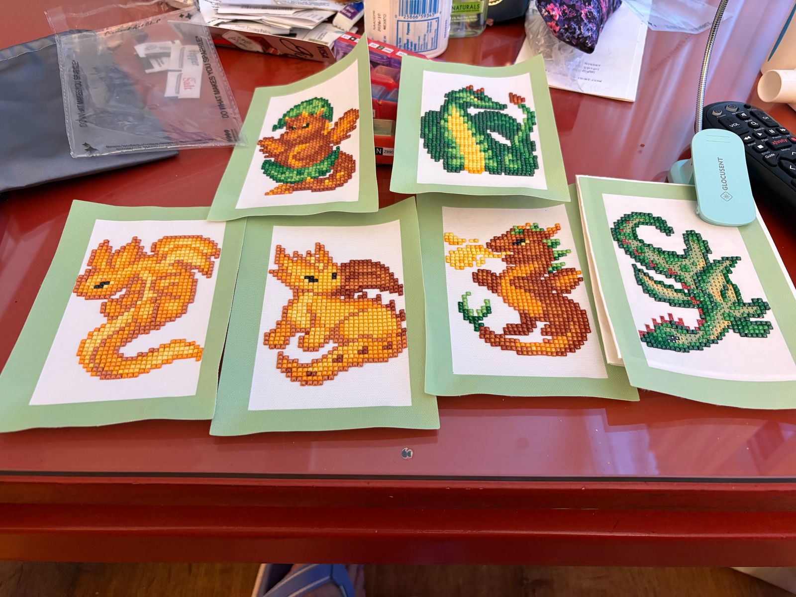 Finished these dragons on vacation. They were a nice time killer on those downtime hours from sightseeing. You can complete one in an hour or two. Definitely going to get a few more mini dazzlers for summer camping trips. Great way to take your Diamond art on the go.