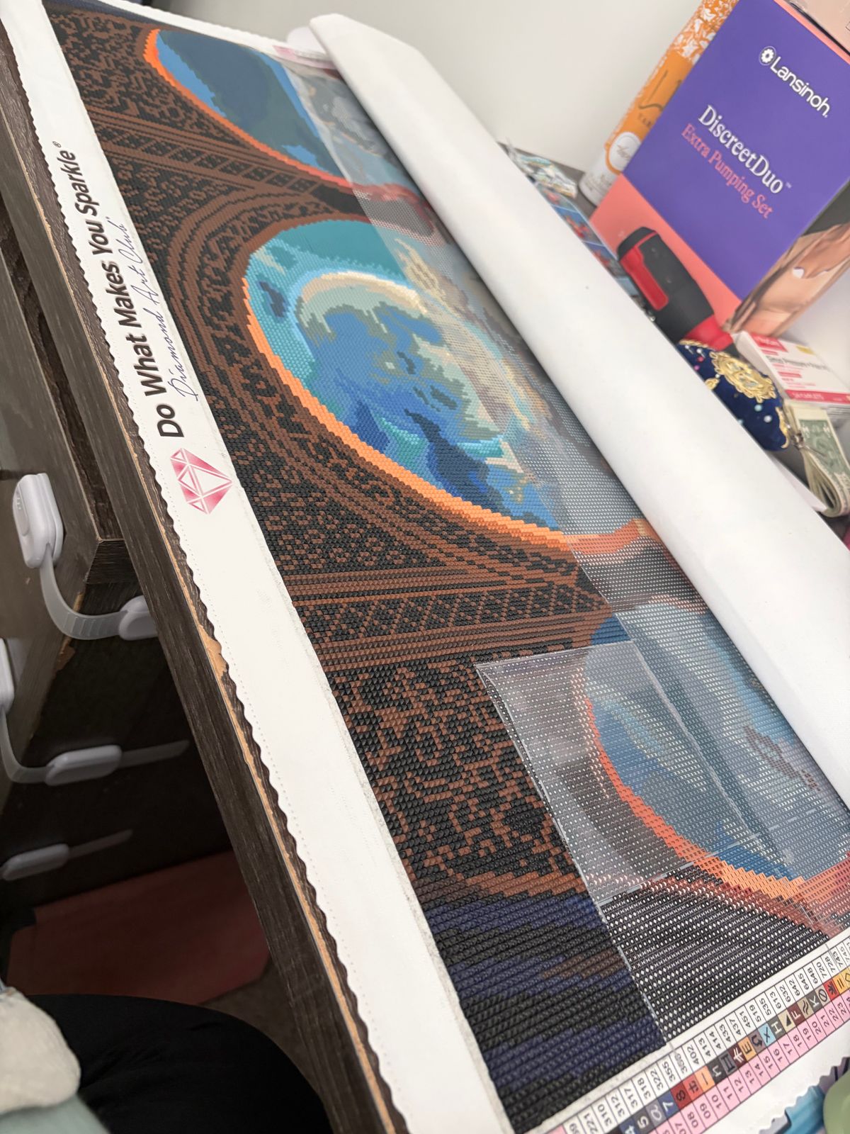 I saw this beautiful artwork on your website and immediately knew I wanted to make this as a Ramadan gift for my granddaughter. I am a beginner and made just one very simple, small piece prior to this. I am enjoying the process and the calm and work on it when I have a couple hours to spare. I won’t rush through this so it won’t be finished too quickly but I am a fan and will order other pieces.
