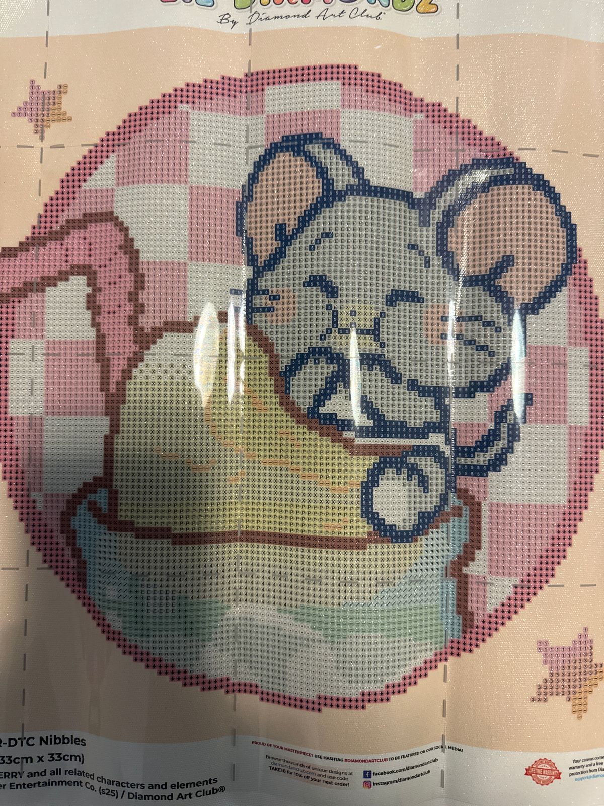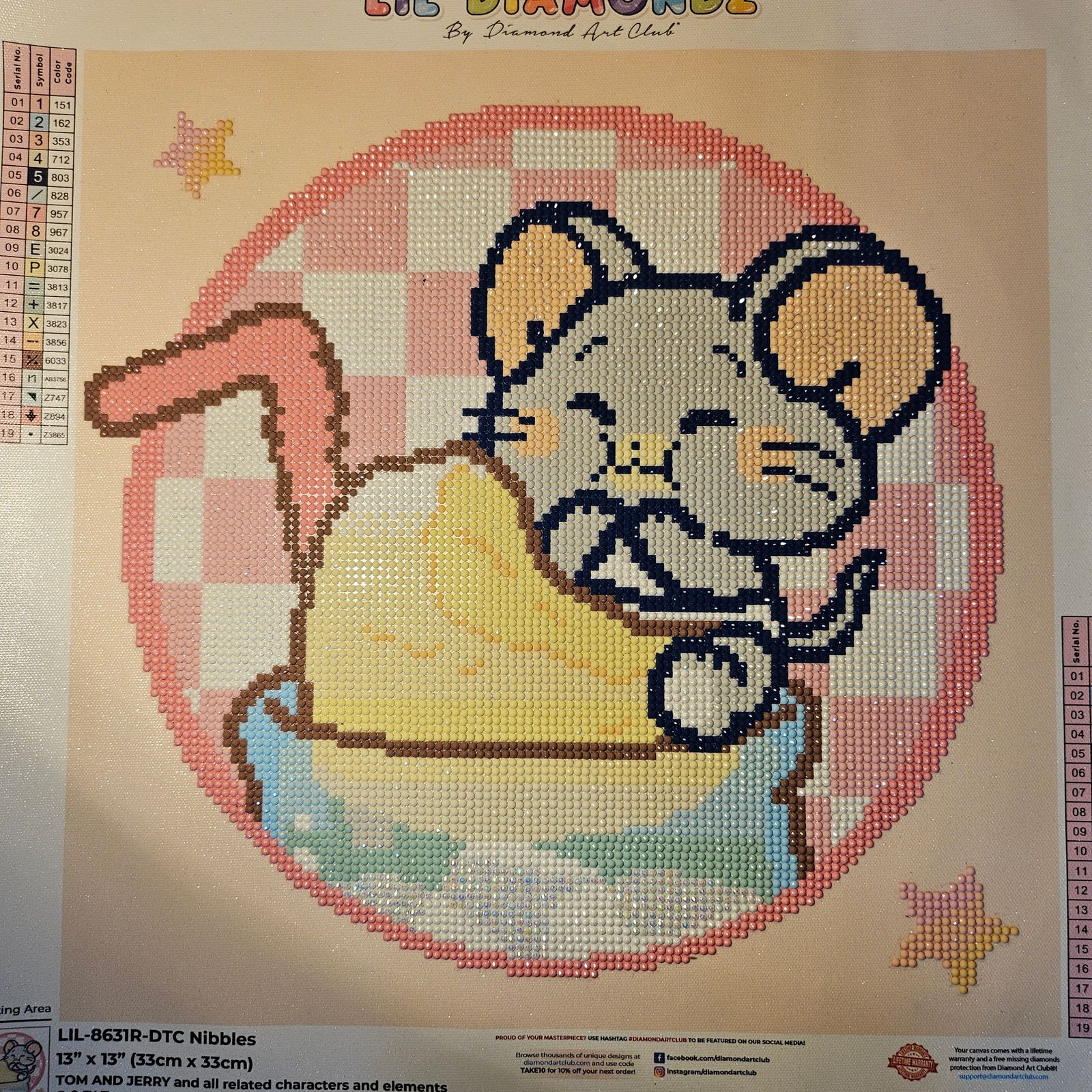 Working my way through the whole set of Tom and Jerry kits, they don't come with any treasure cards but they are good for a newcomer to diamond art, most of the picture has large color blocking areas which can be done quickly, the AB on the ice cubs in the drink make it really sparkly and look so much better in person.