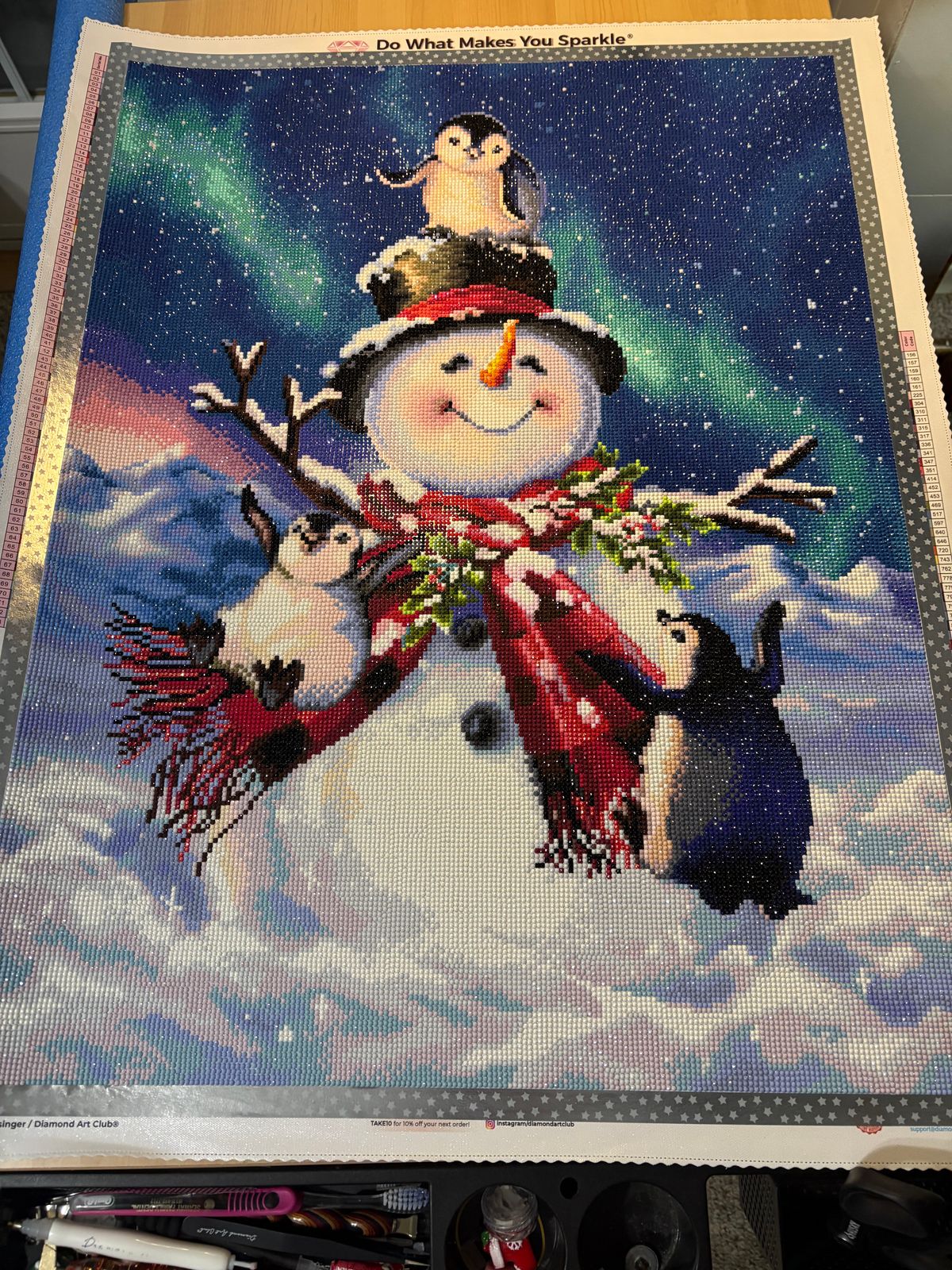 I loved doing this piece of art! I love penguins and everything about this piece was adorable. The colors are bright and the special drills put it over the top! My only negative is there were a lot of garbage drills in this kit. I’ve never had this many in a DAC kit. But I would still highly recommend doing this kit!