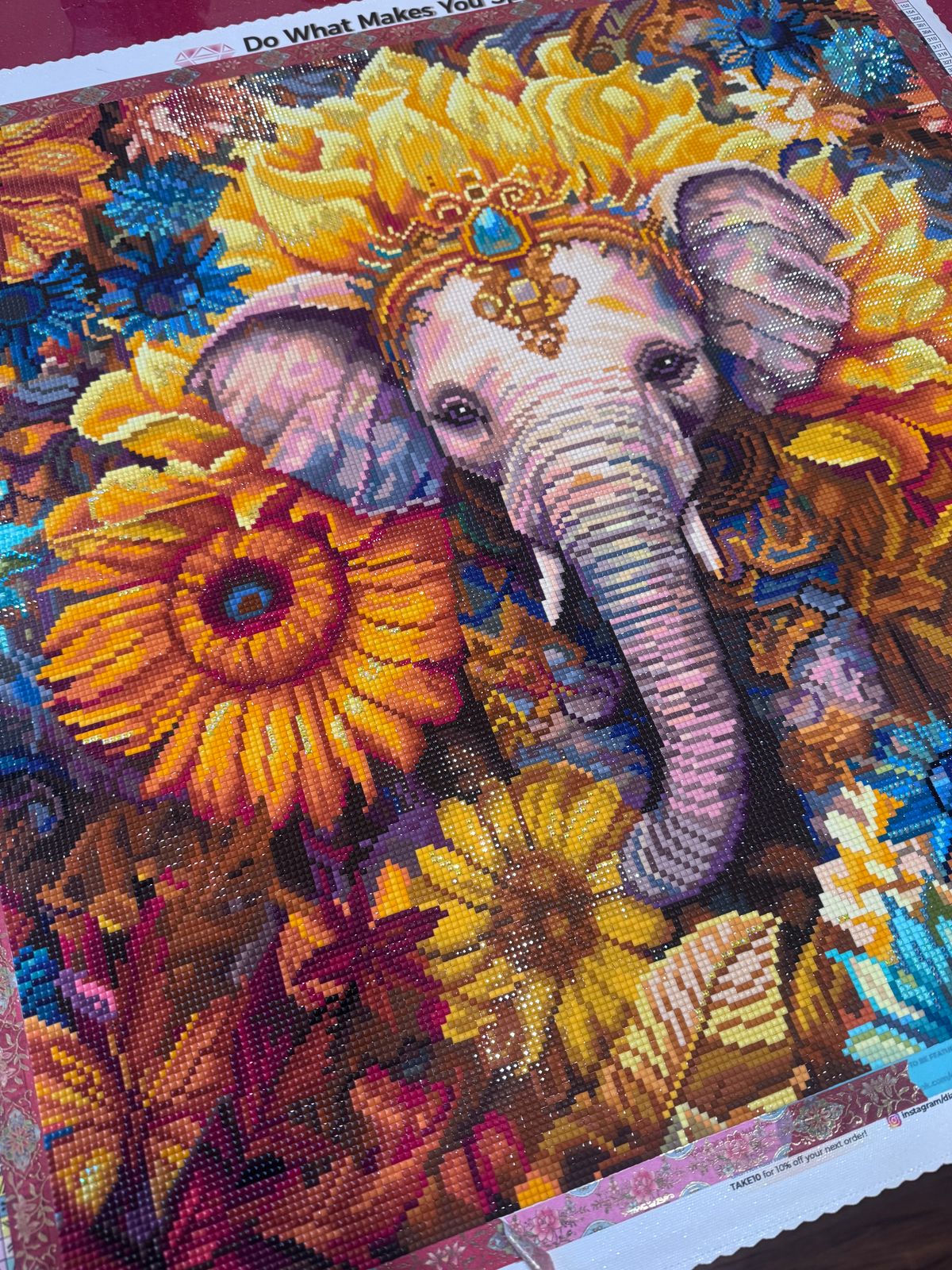 Just finished this stunning diamond painting and I’m honestly blown away by how beautiful it turned out! The colors are incredibly vibrant, the detail on the elephant is gorgeous, and the flowers make the whole piece feel so warm and lively.