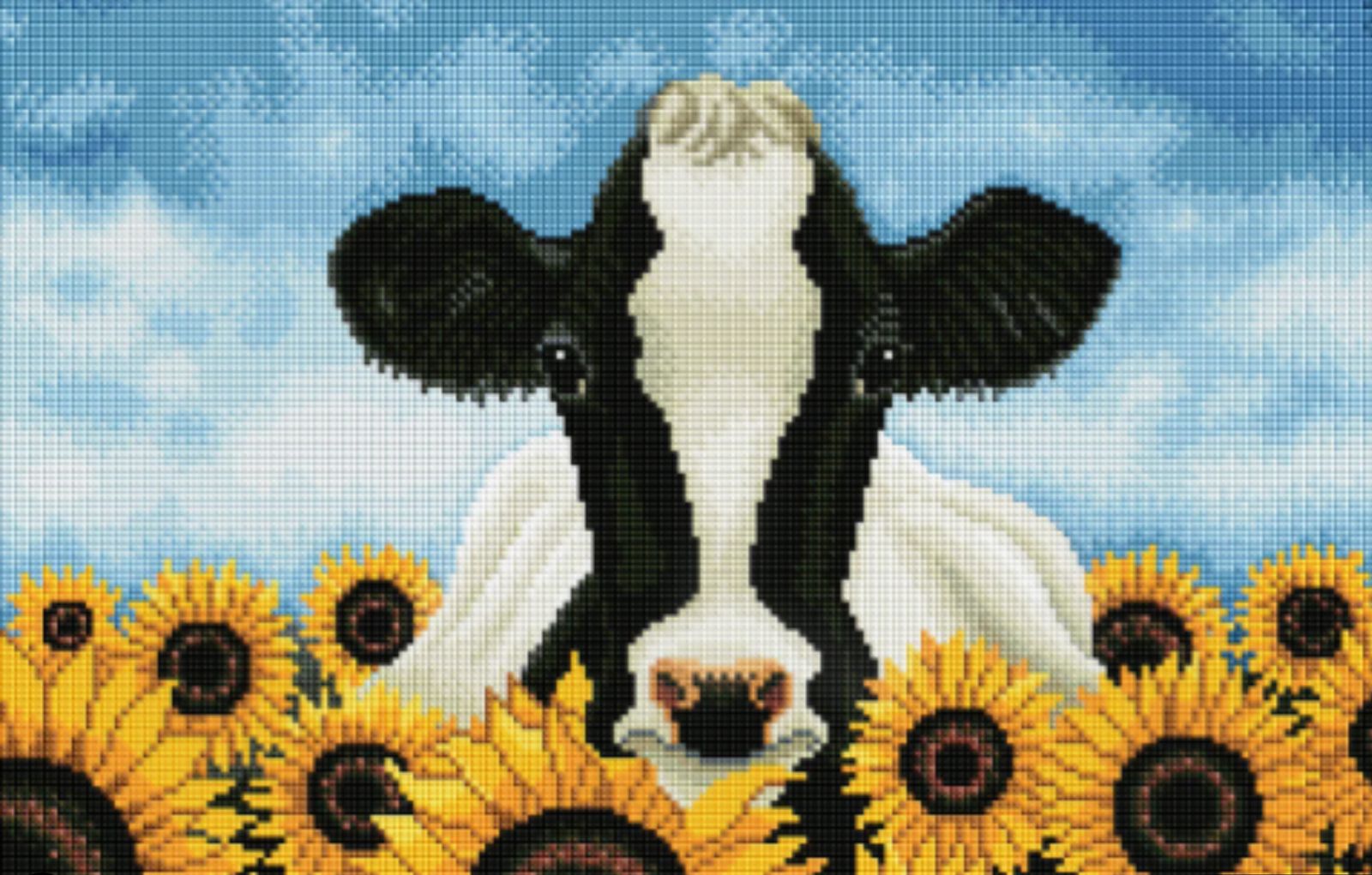 Perfect mix of sunflowers and a cow for a happy country style kitchen. Drills were iffy for the darker ones, but rendering was good.
