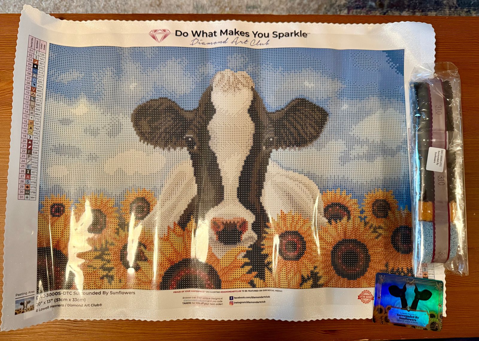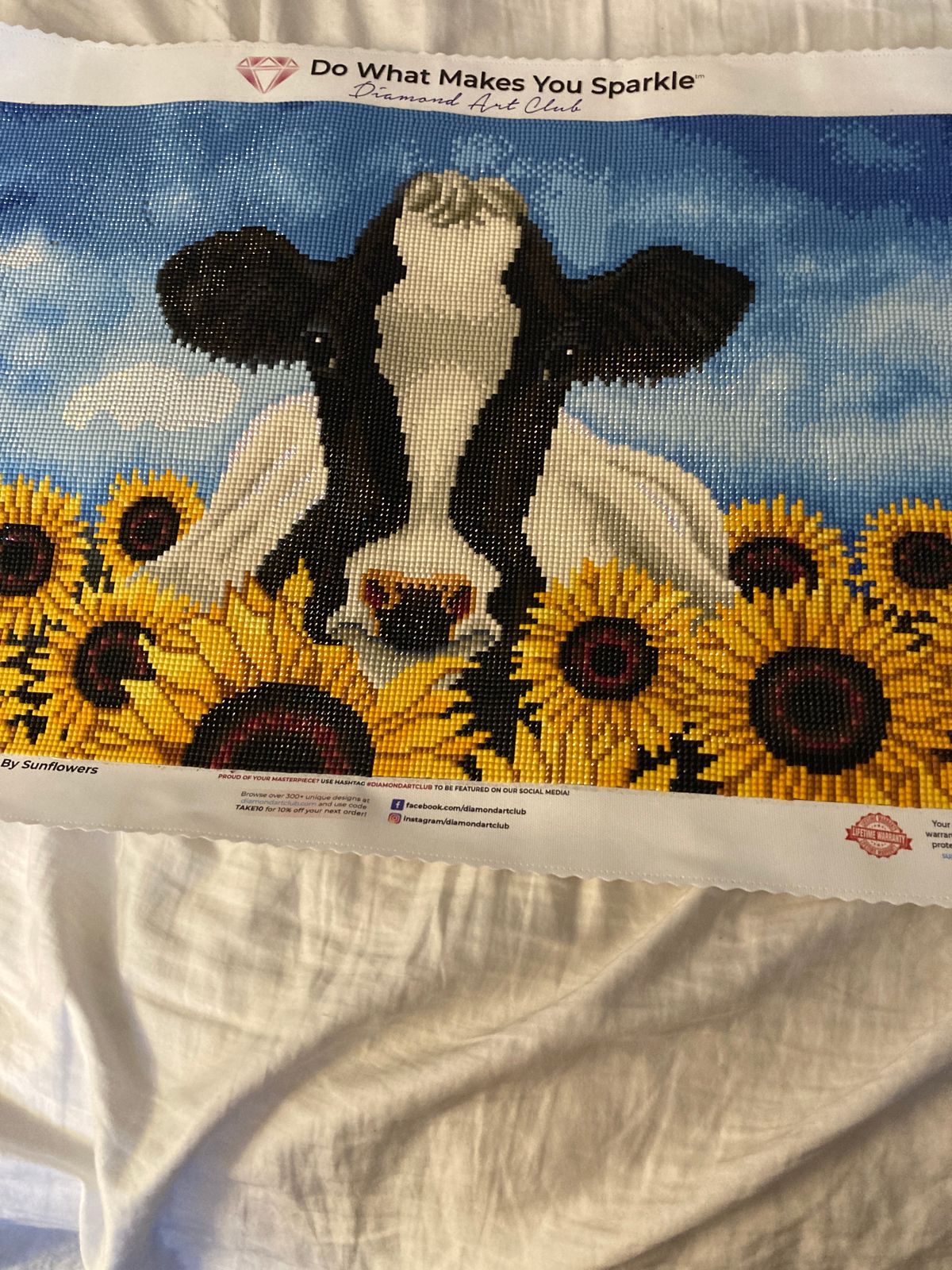 Beautiful picture. Loved the diamond painting. I named the cow Masie.