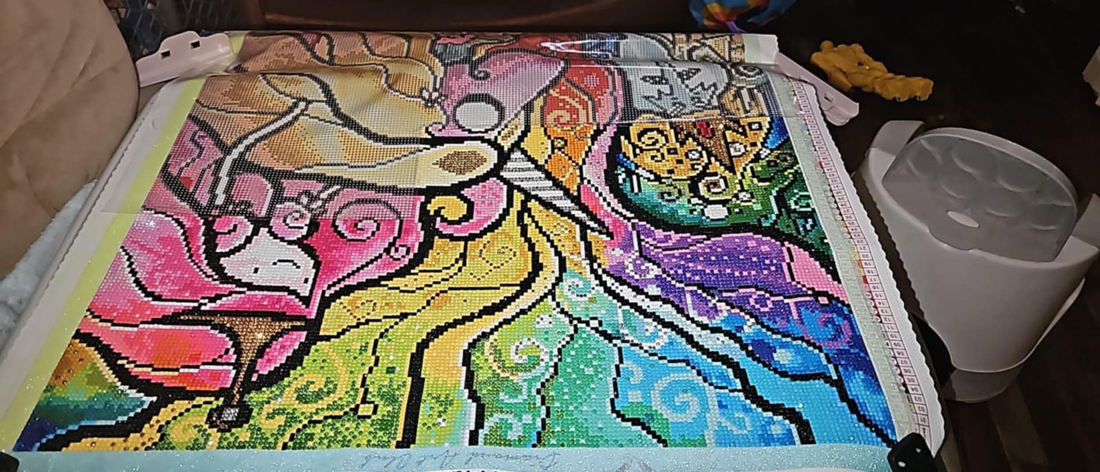 Estoy disfrutando muchísimo de cada minuto que trabajo en este lienzo, los colores son súper bonitos y el diseño es espectacular. Es un regalo para mi hija que veía estos dibujos.