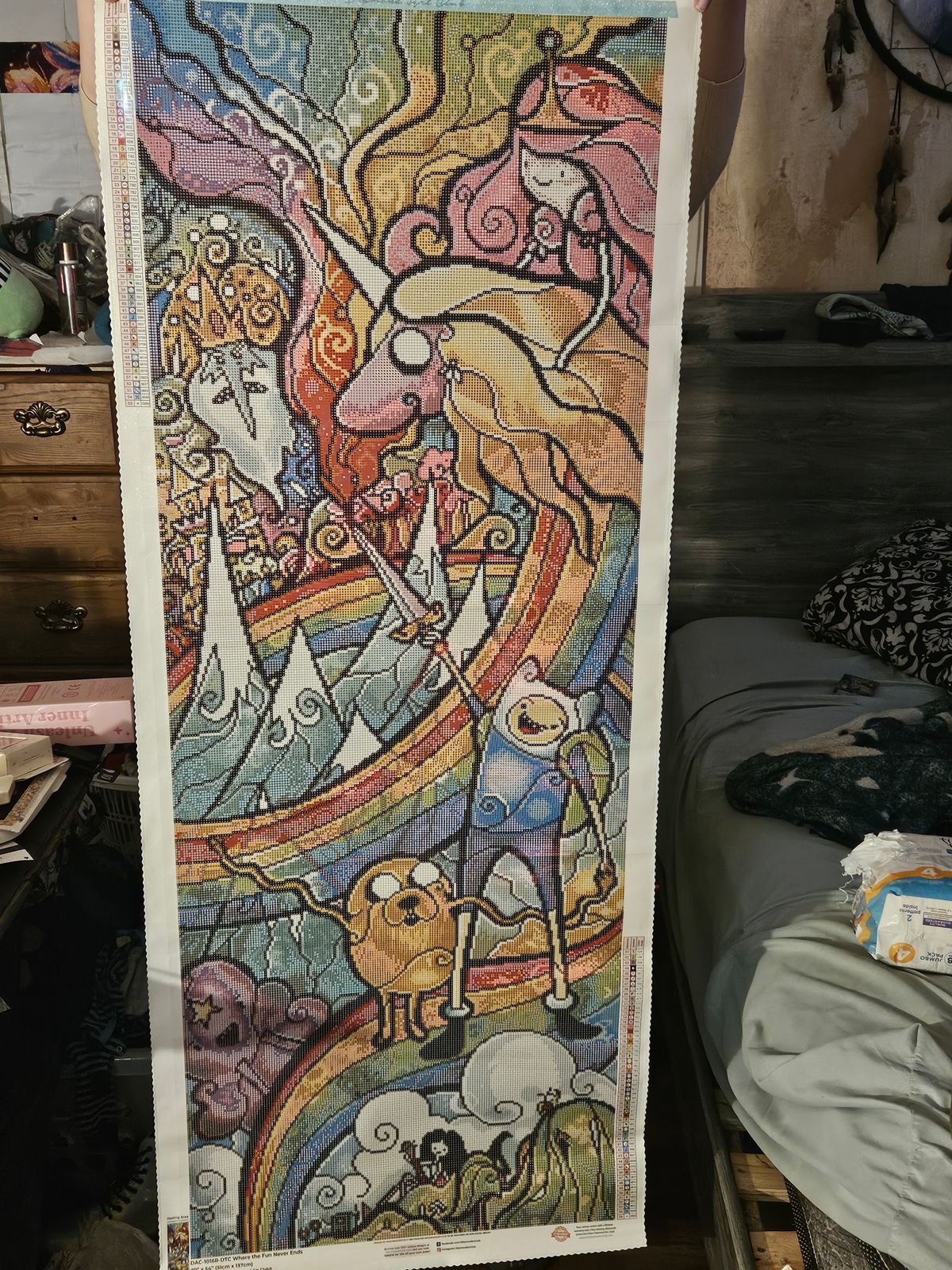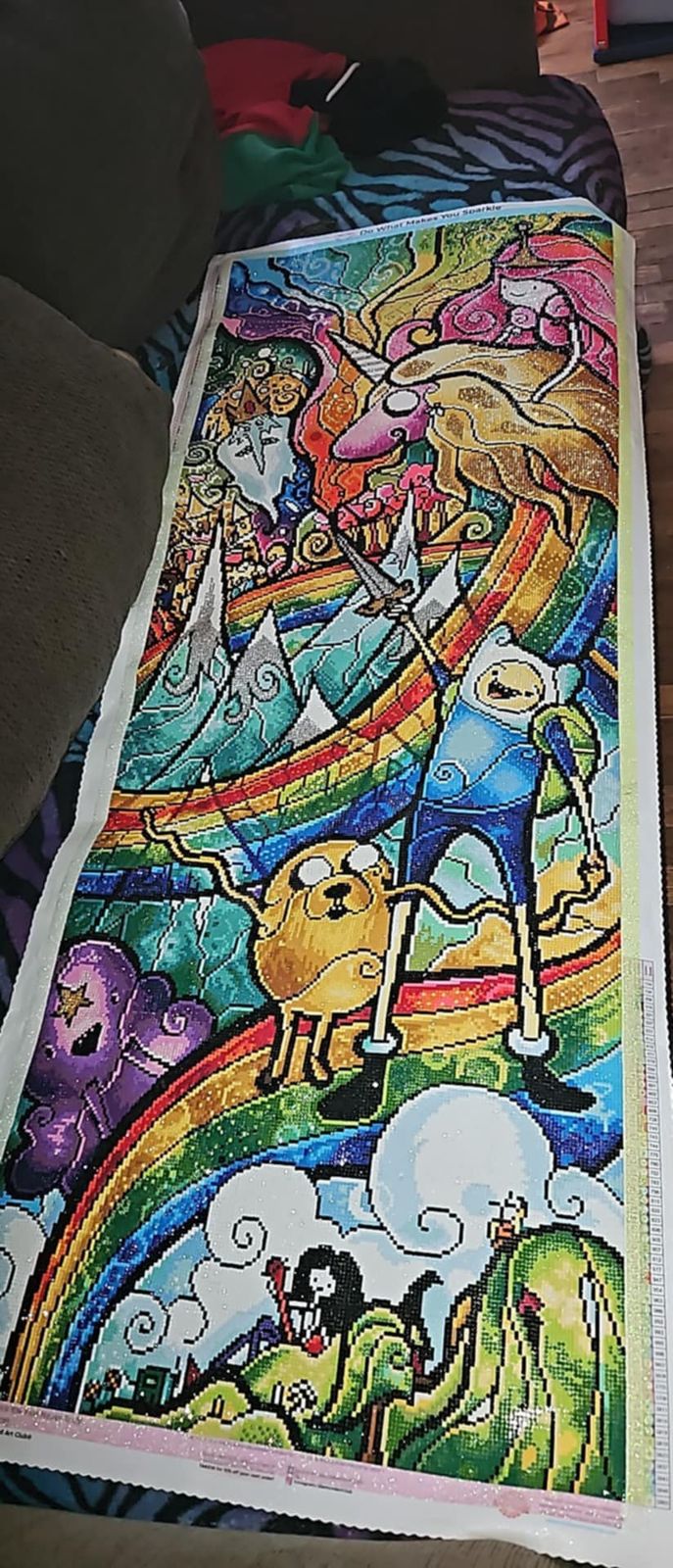 Colors are so vibrant. Really cute. Though I did make a few changes. Marceline was white. I used fairy dust drills to make her snd Bmo sparkle.