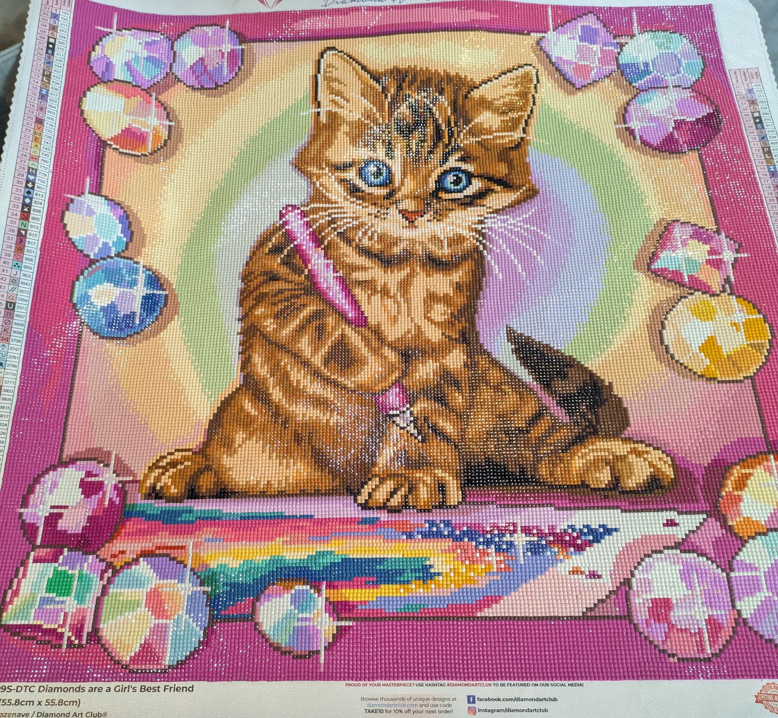 This kit was so much fun to work on. If you love kitties and diamond painting this is the kit for you! It's got everything color blocking and confetti painting areas. The shimmer and shine in this one was awesome! Took me about a month to work on.