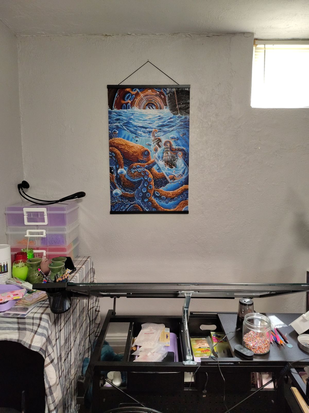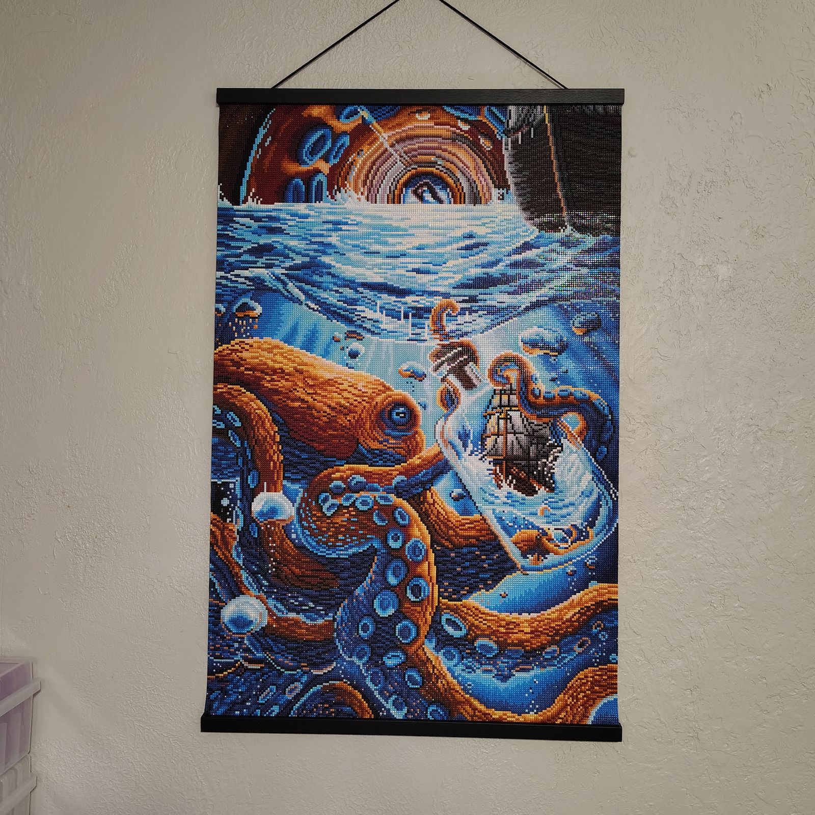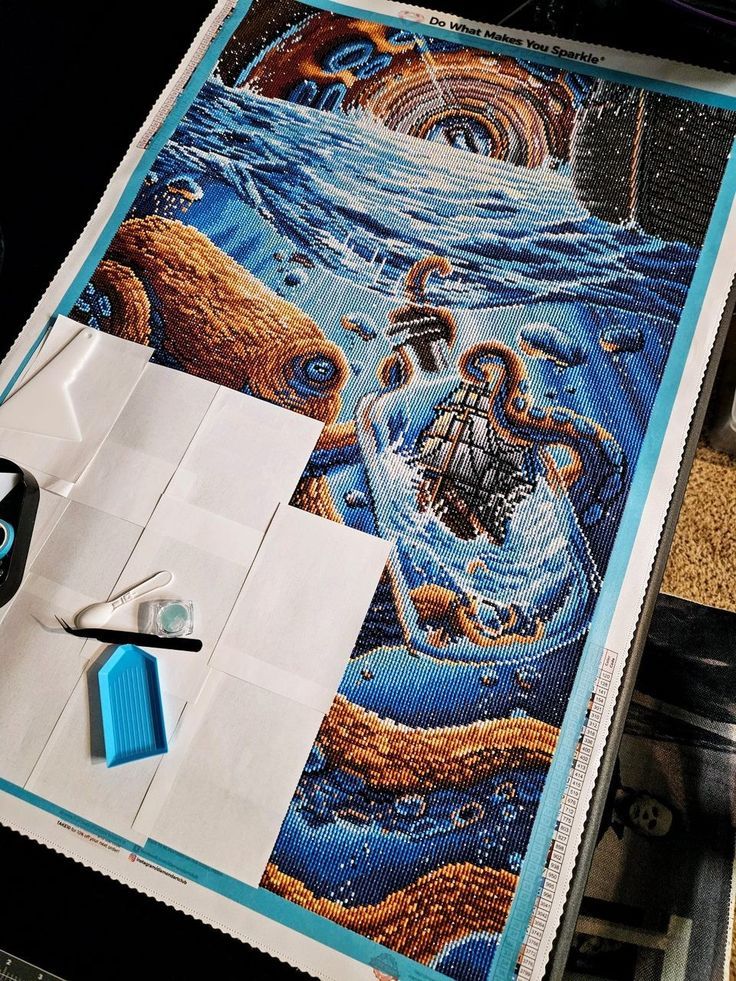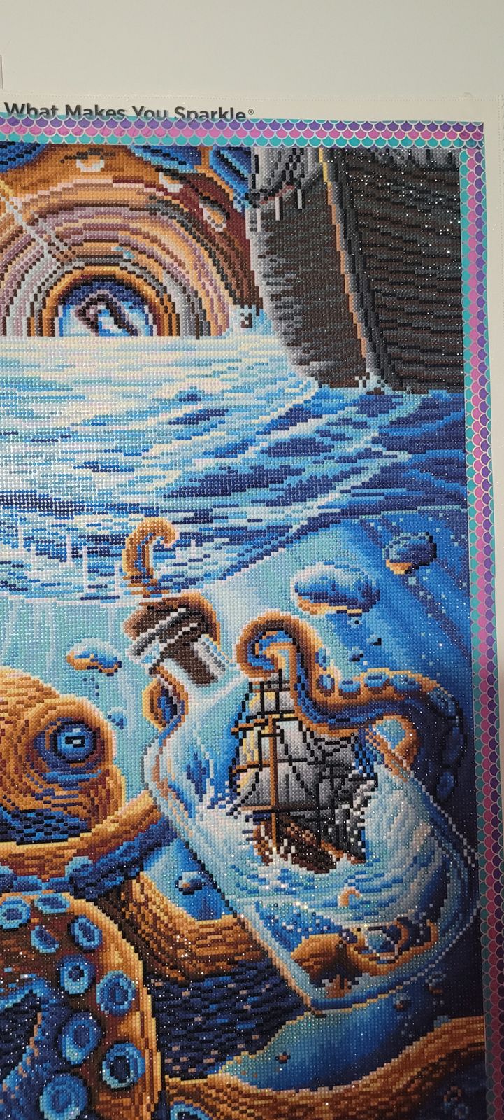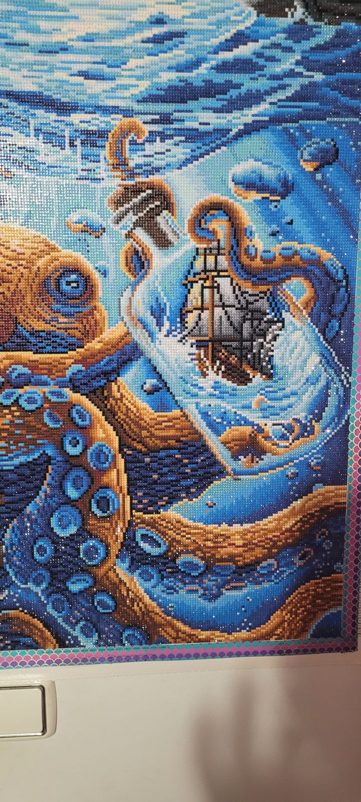Ich habe das Bild gestartet und war bereits nach dem Setzen der ersten Steine total begeistert. Das Bild ist wunderschön, leuchtende Farben und die Steine sind wie immer in absolut bester Qualität. Nach nur wenigen Wochen (ich glaube es waren zwei) war das Bild fertig gestellt und ich erfreue mich auch heute noch an diesem wunderbaren Motiv. Natürlich habe ich von der Künstlerin auch die anderen beiden Kraken-Bilder und ich freu mich schon heute darauf diese demnächst anfangen zu können :-)